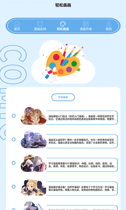 树洞漫画是一款专为绘画爱好者打造的漫画工具,它能教你学会动漫绘画哦。