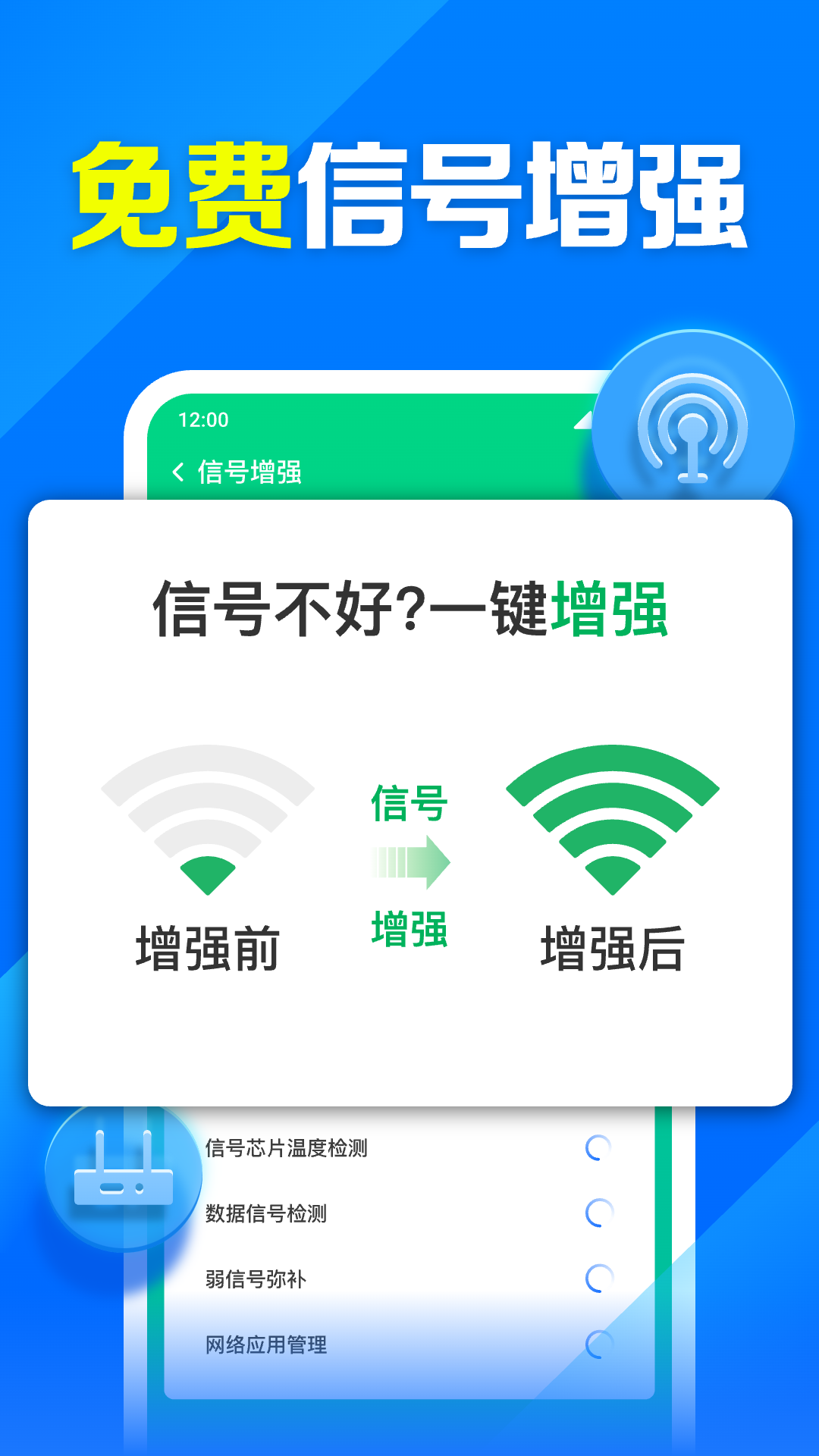 WiFi钥匙随行连是一款专业的安全上网的软件,它具有网络测速、流量监控、WiFi保镖、网络诊断、网络加速、信号增强等实用功能。