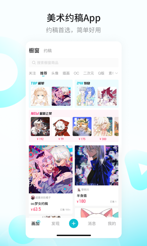 画加是一款专门为美术爱好者与专业人士打造的约稿平台App。我们全力为大家营造一个安全、高效且便捷的在线约稿环境,使您能够轻松寻觅到契合的美术创作者,一同创作出独一无二的艺术作品。