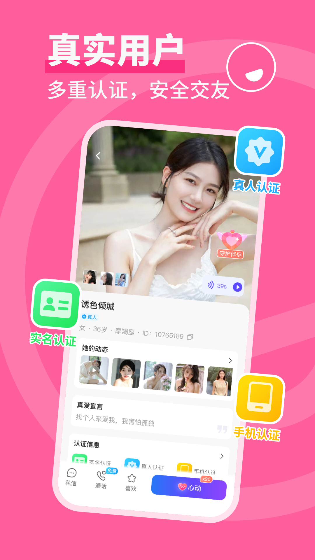 【真实用户】真人认证、手机认证、实名认证,多重安全认证,交友安全可靠。