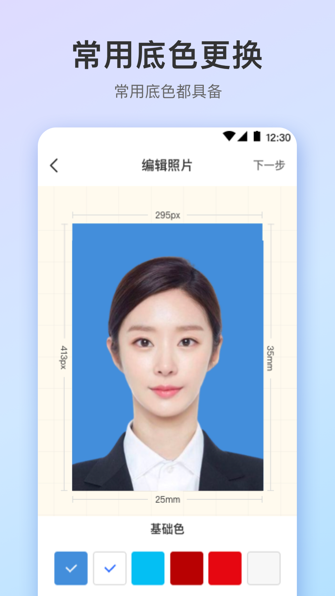 这里还有超方便的功能哦。您可以随心所欲地自定义证件照的尺寸,轻松更换证件照的背景。
