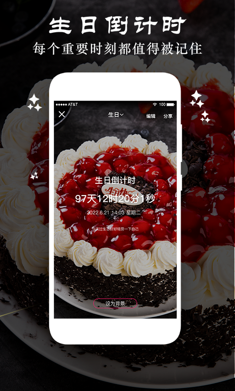 倒计时:记录节日,生日、恋爱日、纪念日、高考倒计时、重要日程等;
