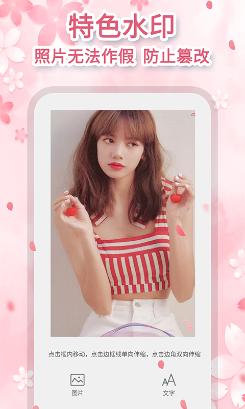 - **图片加水印**:能够添加来自自定义相册的图片、自定义文字,还能自由涂鸦,多图层操作随心所欲。