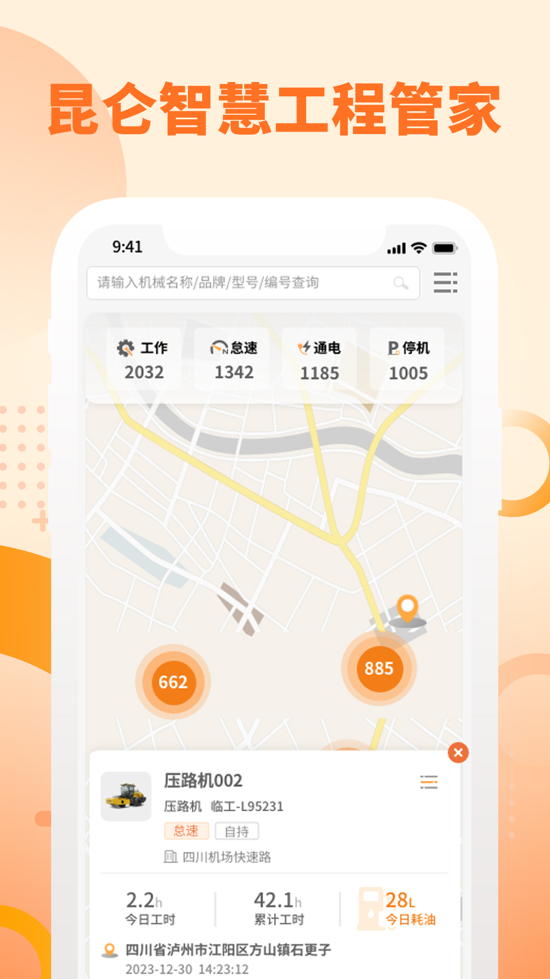 昆仑智慧工程管家针对现场施工痛点、难点,实现对人、车、项目的可视化、数字化、一键化管理,基于车载终端,实现工时油耗统计、异常报警管理、保养提醒、维保统计、人车匹配、绩效排行、仓储管理、趟数统计等功能。