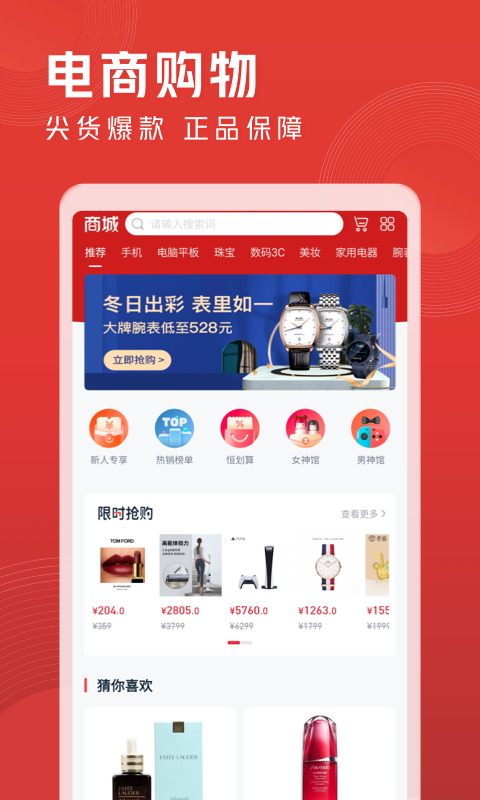 - 这里有3C数码产品、手表、美妆护肤类产品等上万种商品,基本上可以满足用户的各种需求,无论你想要什么,在这里都能找到。