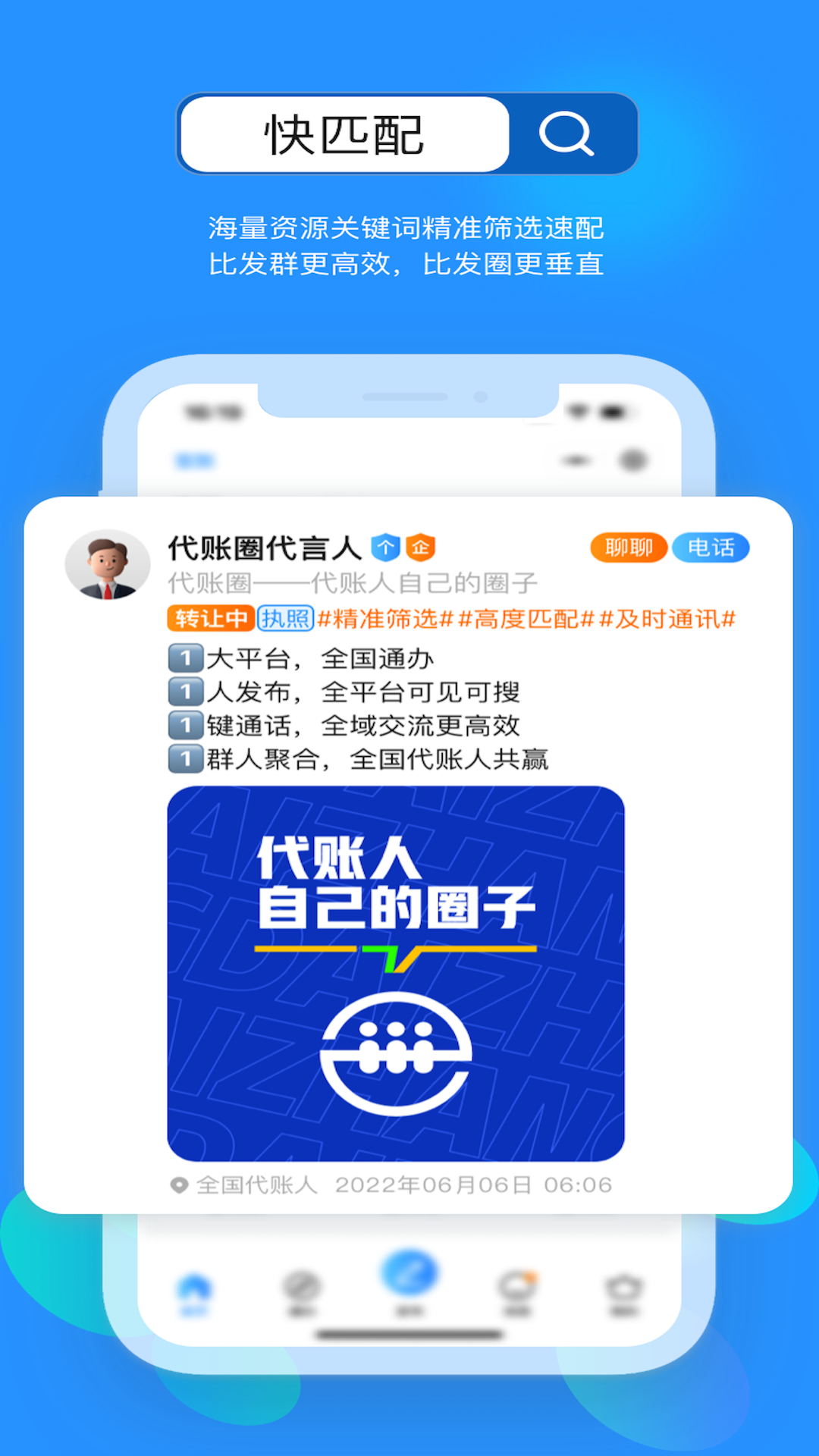 代账圈是一个专门为财税代账企业打造的平台,主要提供通办供需信息发布与对接服务。