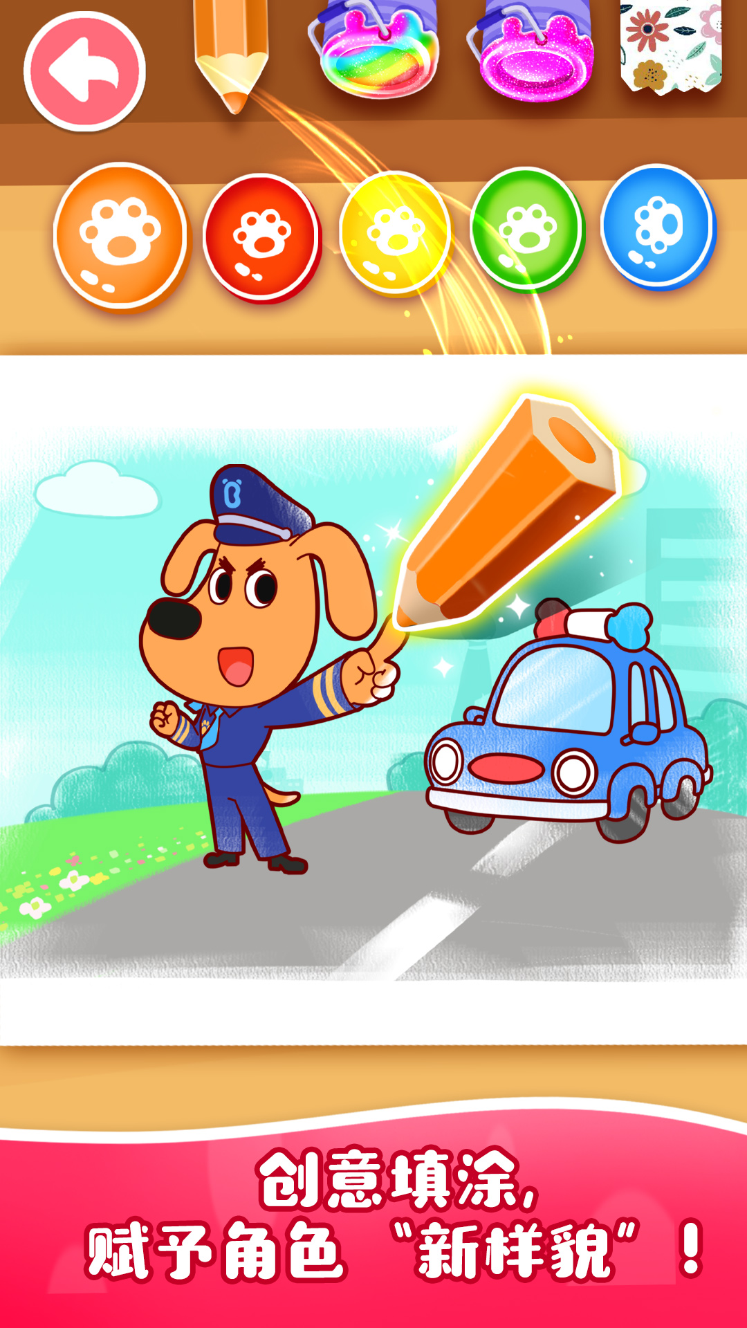 这里有各种各样的画笔工具供宝宝们选择,像蜡笔、油画笔、荧光笔,还有神奇的魔法笔等等。更有意思的是,画纸可不只是单调的白色哦,还有逼真的沙滩、草地、街道等主题画纸呢。