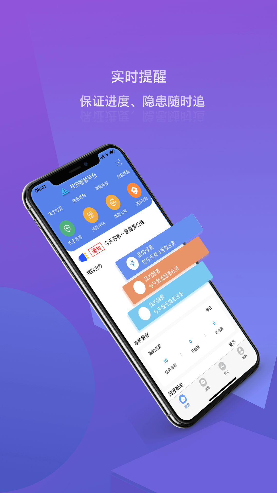 双安校园版系统能够实现对学校基本情况的查看功能。在双重预防体系要求方面,该系统可进行风险辨识管控、隐患巡查治理的数据管理与应用。此外,系统还兼顾卫生健康、危险实时监测以及安全应急等信息管理功能。