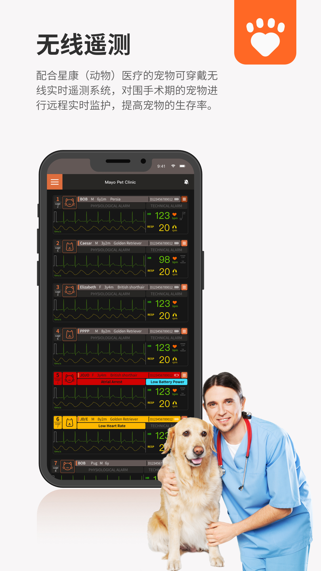 而配合星康(动物)医疗的宠物可穿戴无线实时遥测系统时,星爱宠能够对处于围手术期的宠物实施远程实时监护,进而提升宠物的生存率。