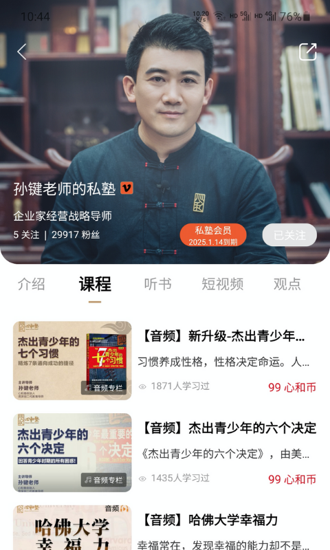心和塾APP隶属于深圳市心和未来教育科技有限公司,于2020年创立。心和塾秉持“每一位导师都是一座宝藏”这一理念,以企业永续、家族传承为核心。心和塾创始人孙键老师联合国内众多优秀导师,构建起一支全方位、深度化的师资团队。心和塾APP旨在为学员打造一个全方位、深度化的私塾平台,学员能够借助该平台链接到更多来自各个行业的实力导师,从而进行近距离的互动与交流,开展线上线下的针对性学习,实现双向价值的创造。