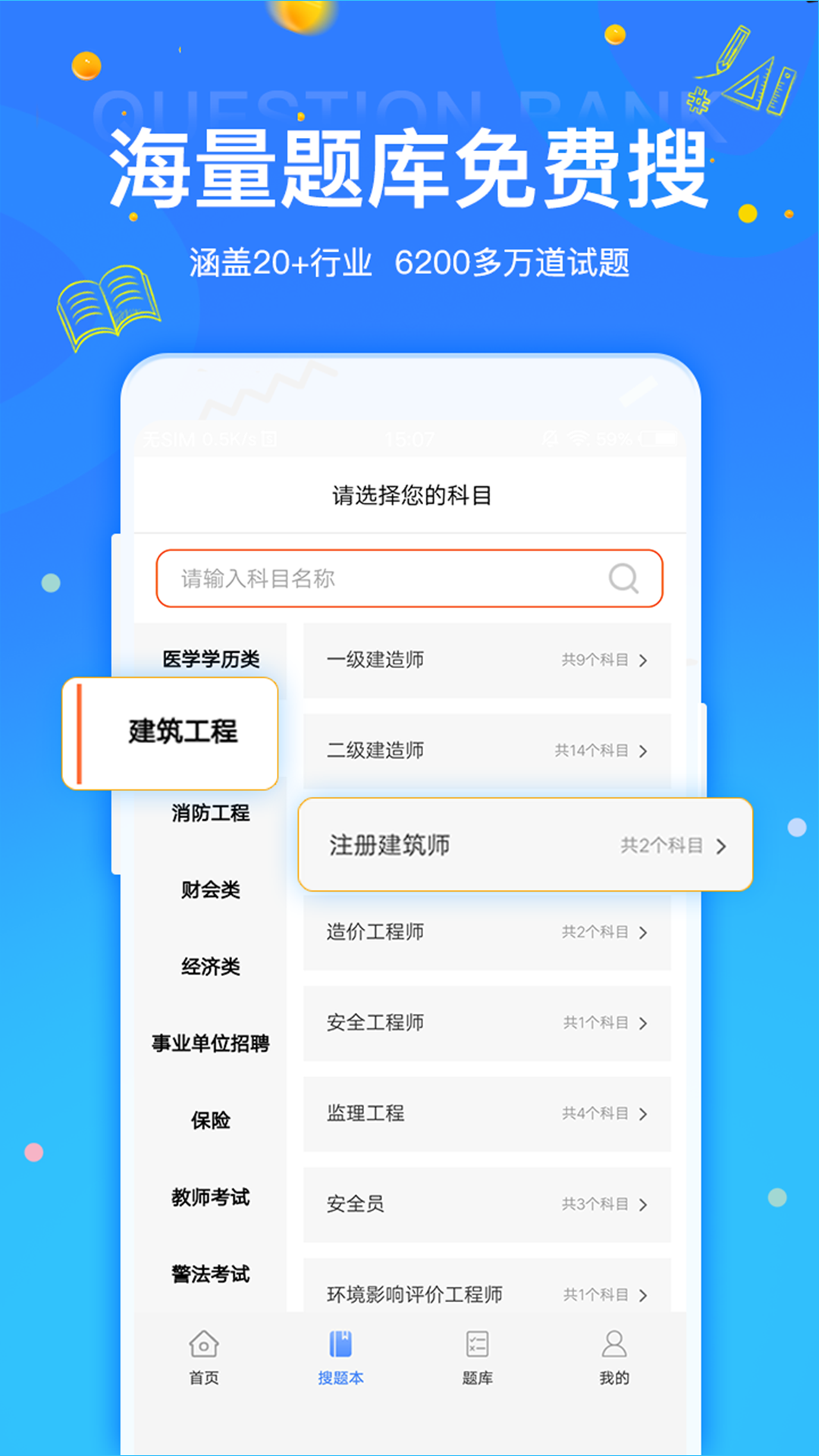 拍拍刷题是一款高效且智能的学习类app。它拥有海量的题库,可供用户进行练习。其题库覆盖的范围极其广泛,包含航空航天、边防出入境、铁路司机培训、国家电网培训、电力安规、国家公务员、医师资格、医学初中高级职称、执业药师、执业护士、卫生招聘、教师资格、消防工程、建筑工程、财会经济、警法考试以及司法考试等各大系列的试题与课程,让用户能够随时随地开启在线刷题模式。