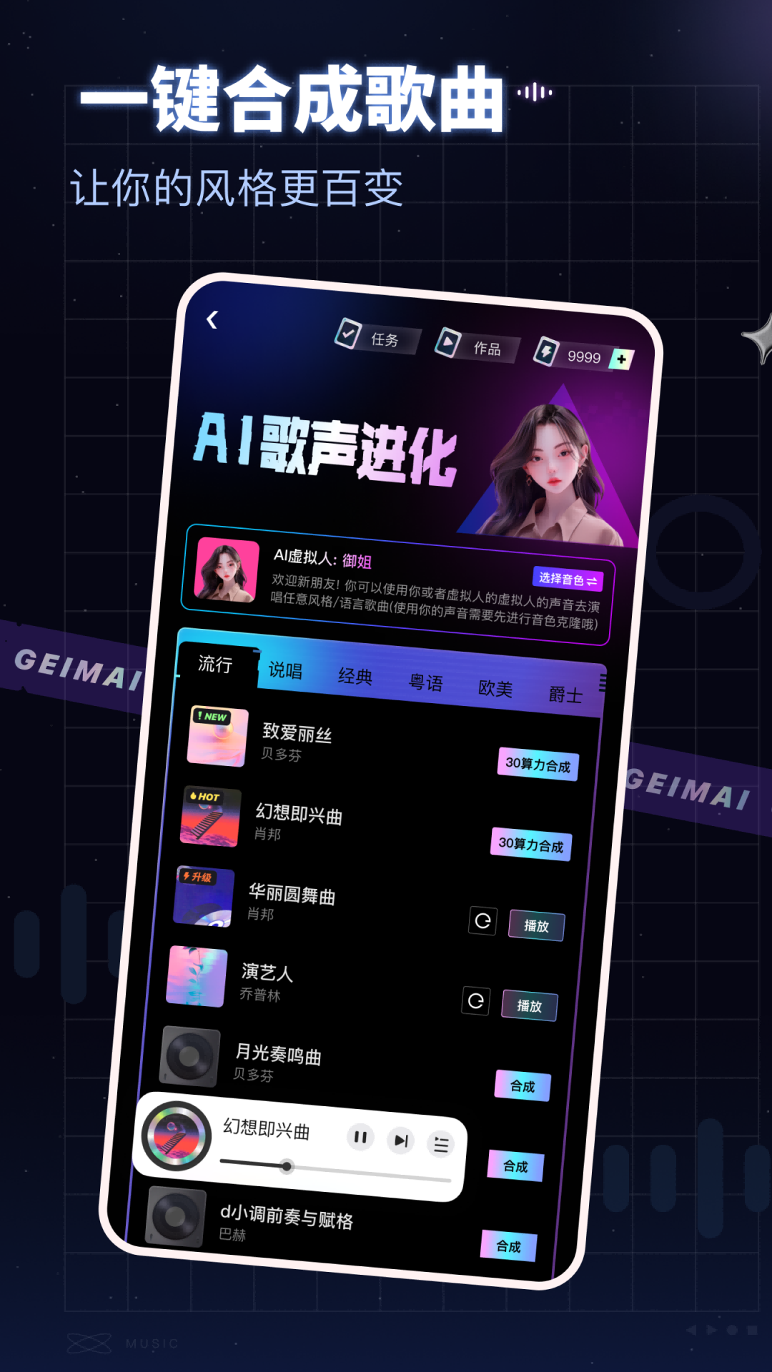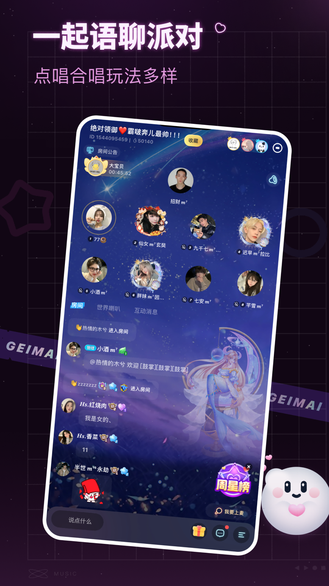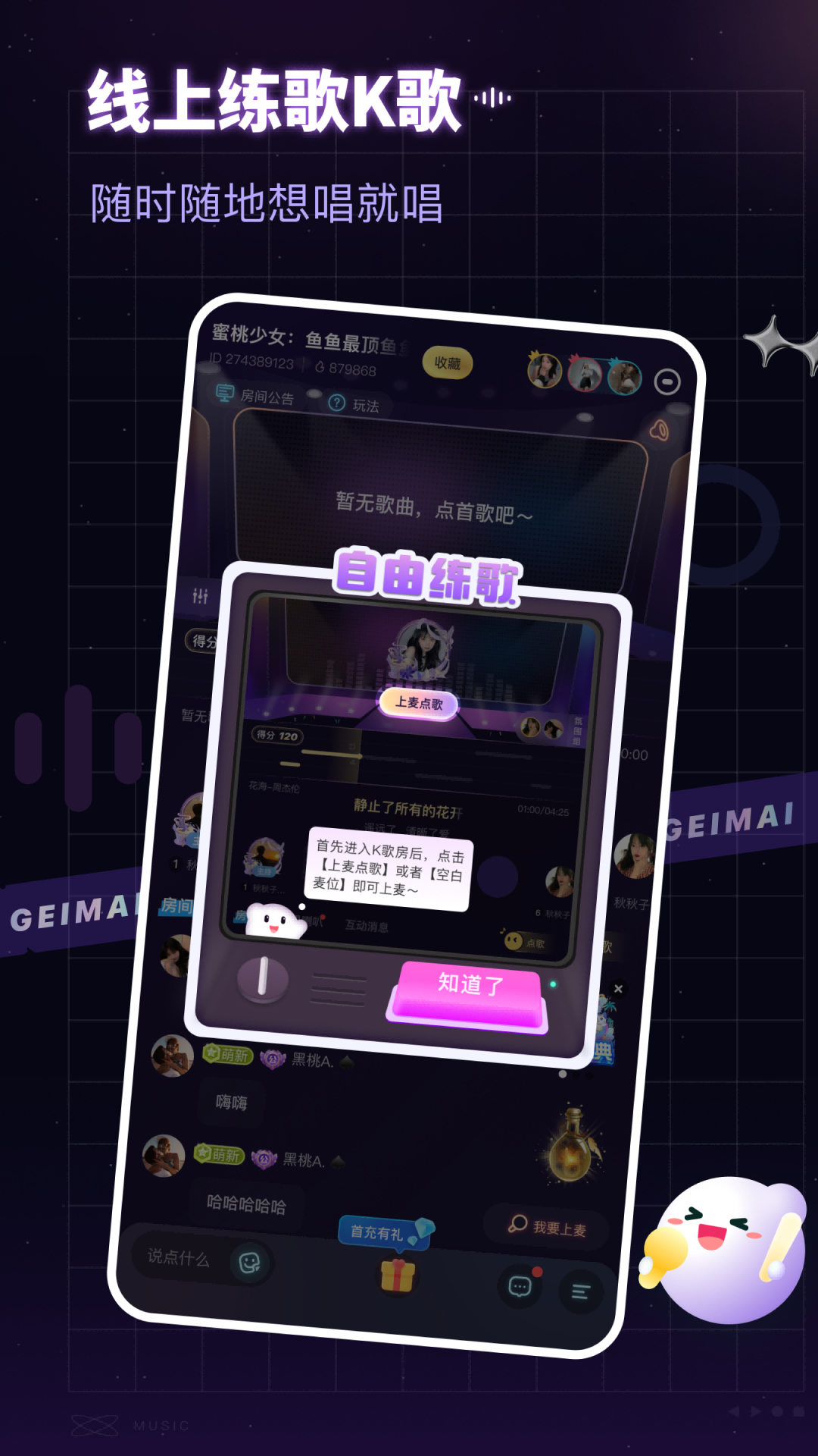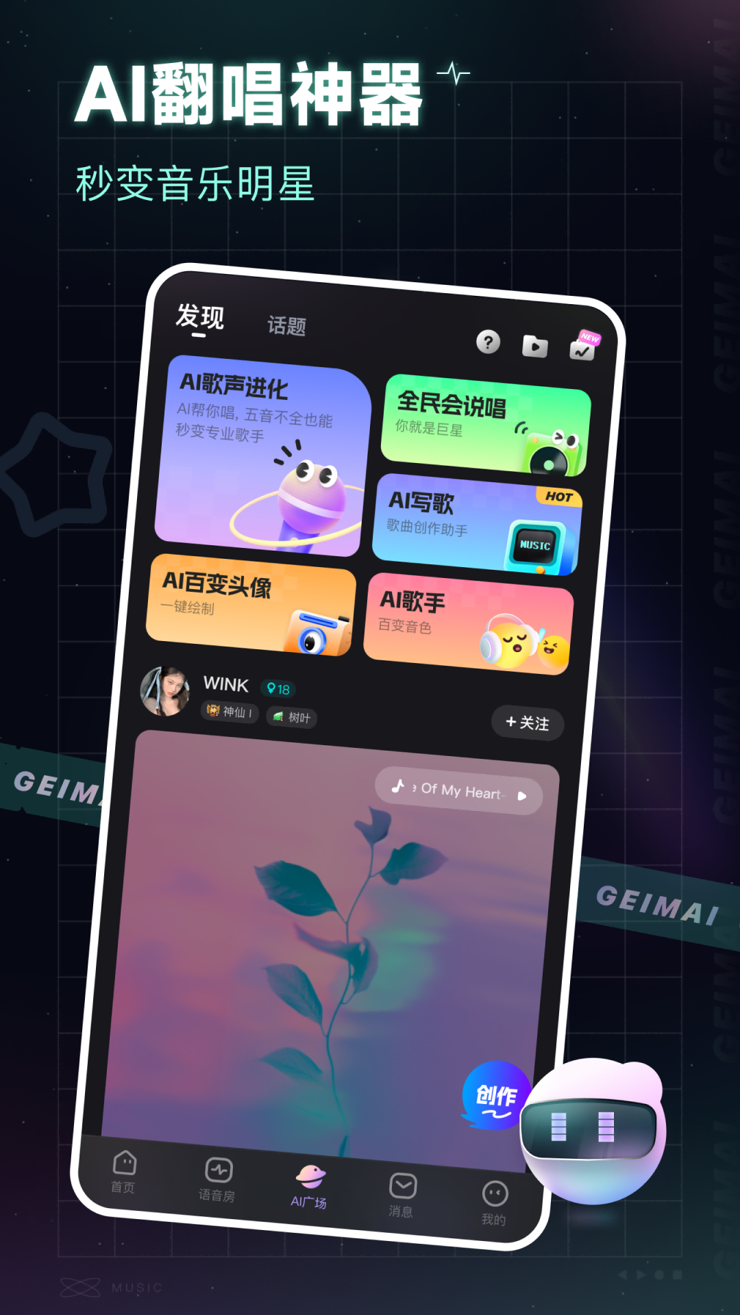 给麦,AI音乐唱歌交友社区。AI翻唱AI写歌AI唱歌、心动合唱、歌手点唱、交友派对、烧脑推理...多种玩法随心换,随时给麦随时嗨!
