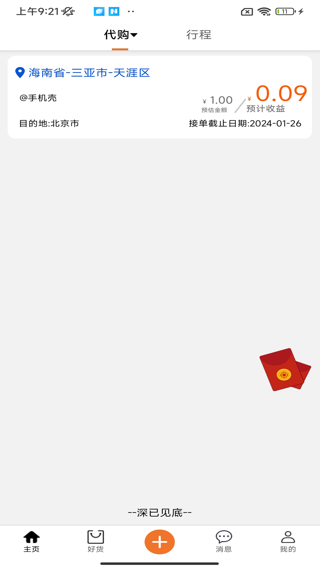 2、接单:你在出行的时候给别人捎带物品赚取佣金。