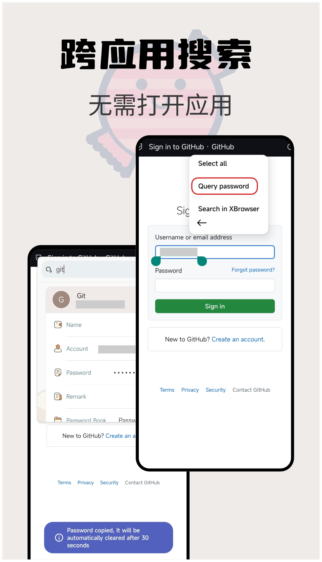 其三,在使用上极为便捷,支持搜索功能,能让您快速定位想要查找的密码内容,还可实现跨应用的快速查询密码操作。