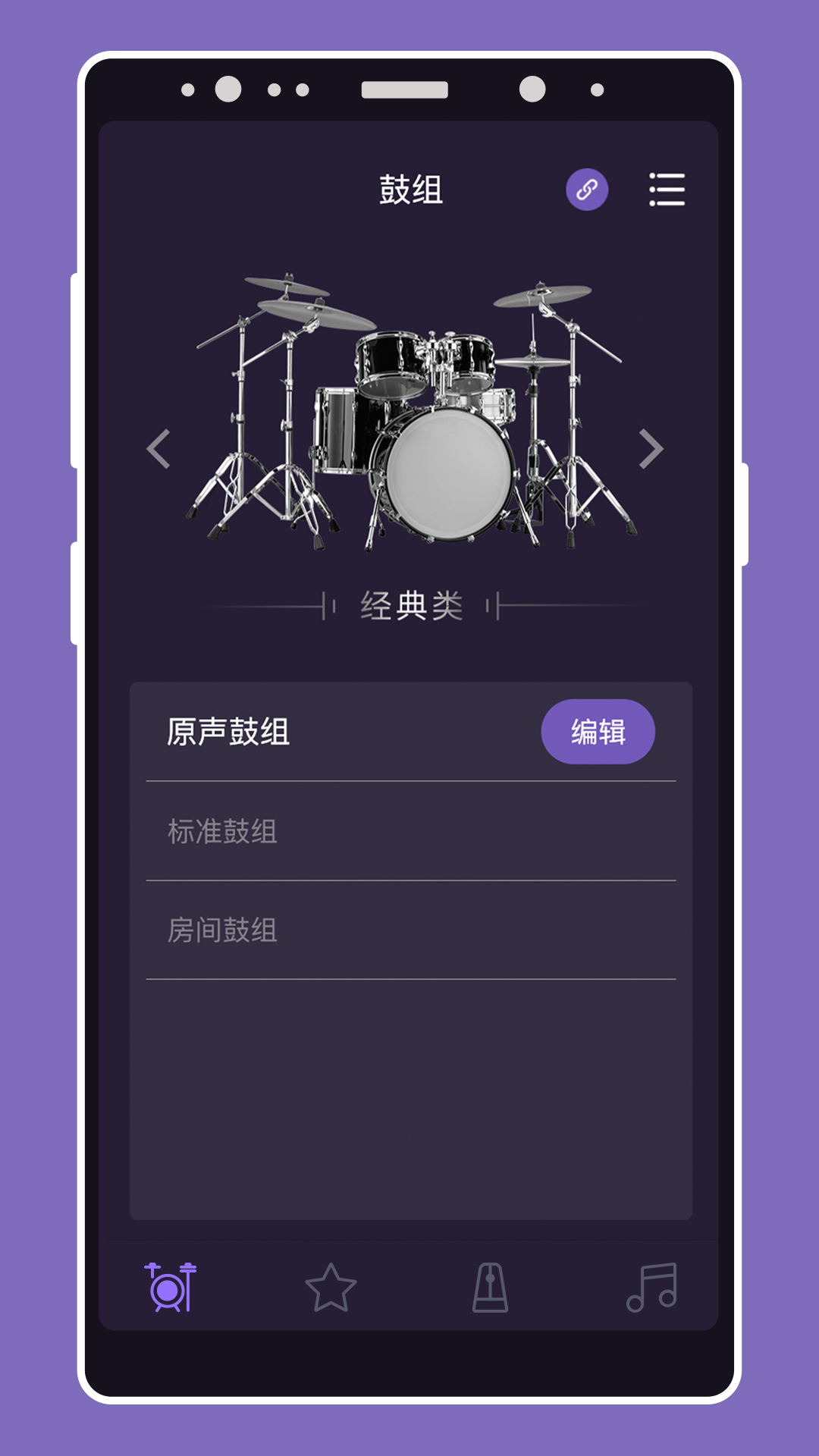 鼓组模块:按鼓组风格进行了分类,让您直观地按照风格选取所需要的鼓组。点击编辑后可为不同的鼓盘配置您想要的音色并进行参数调节,最后将自己满意的设置保存下来。