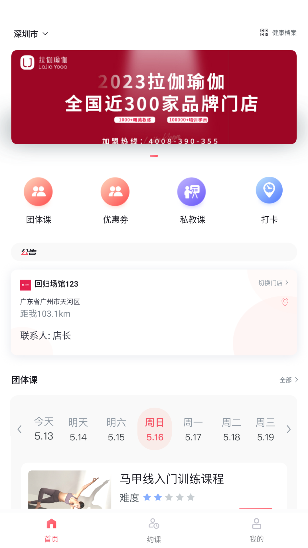 拉伽是一家全国连锁的瑜伽馆哦。其在深圳、东莞、惠州等地均设有连锁分店呢。拉伽旨在满足不同人群改善形体的需求,是专门为此打造的瑜伽馆。这里诚挚欢迎您的到来!您还能够在线预约课程,然后到线下体验瑜伽的魅力。