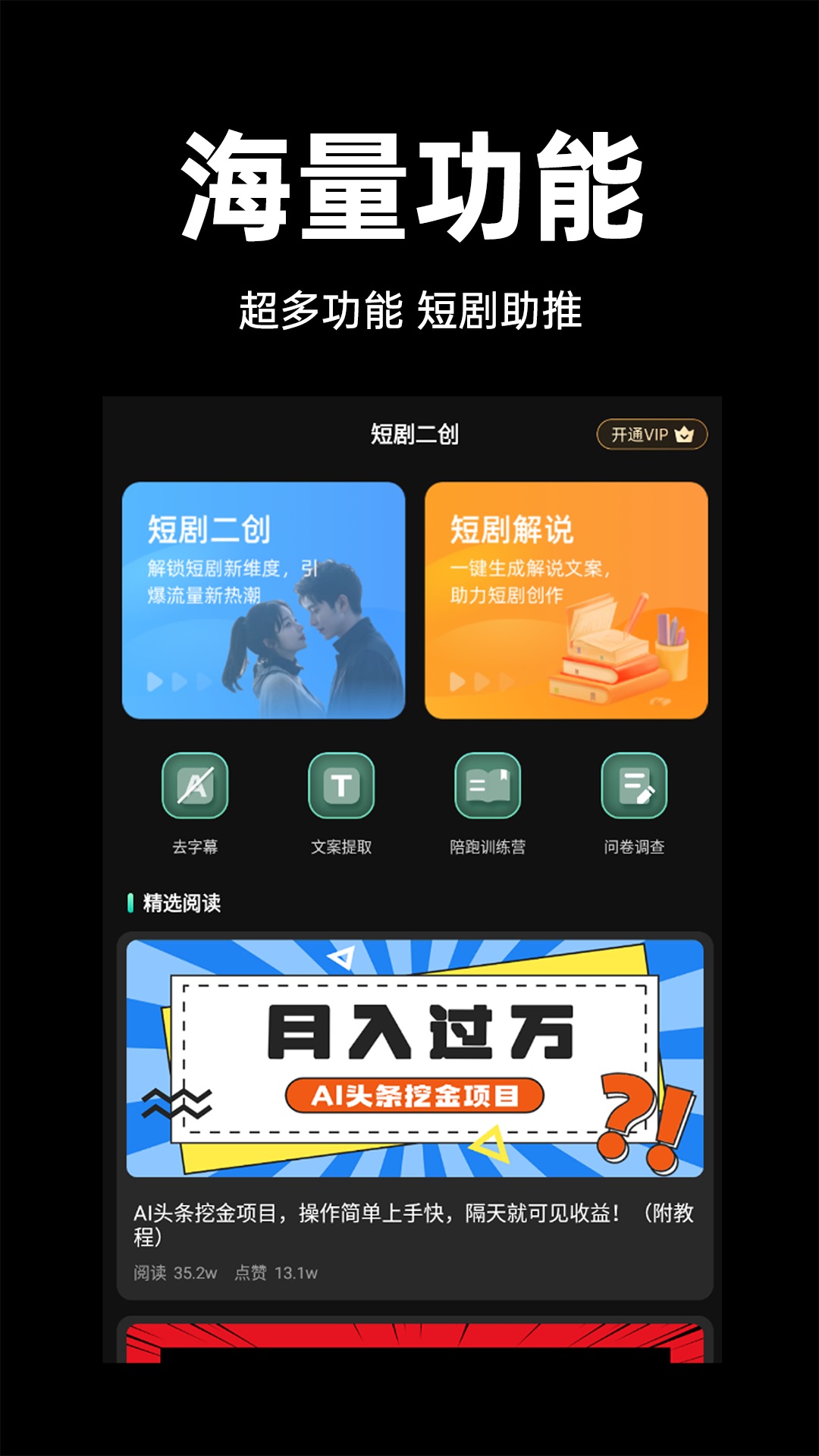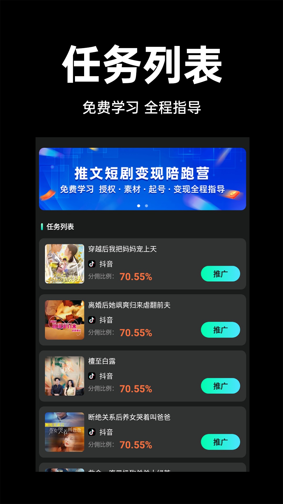 【多样变现课堂】提供丰富的变现课程,涵盖短剧解说技巧、内容创作策略、平台运营规则等,帮助用户提升创作能力和变现能力。