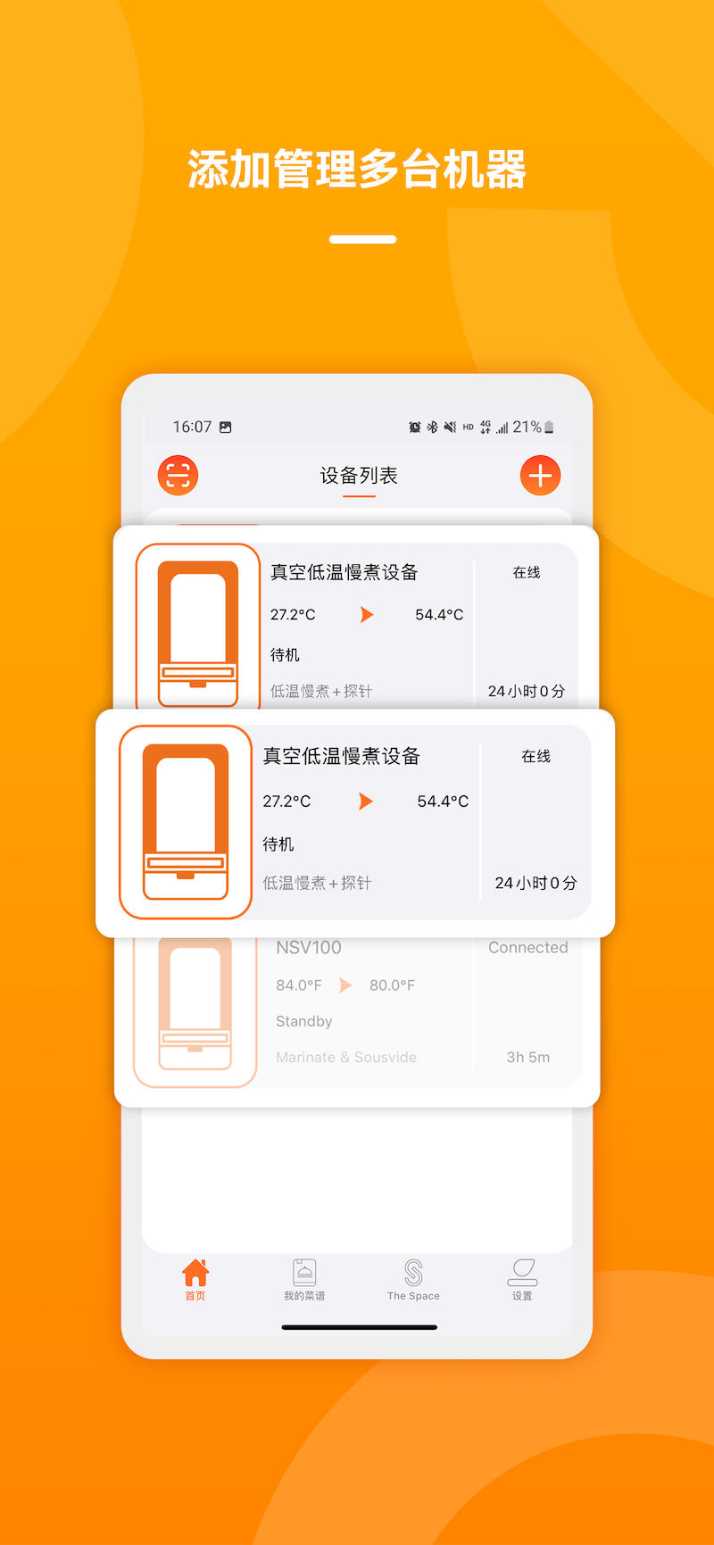 The Space应用程序的设计目的在于对The Space团队所开发的智能设备进行控制。这里所说的智能设备指的是智能低温慢煮设备,这是一款集多种功能于一体的低温慢煮炊具,它能够让低温慢煮这一过程变得更加简便。当您将该应用程序与设备配对后,您将会享受到更为高端的烹饪体验!