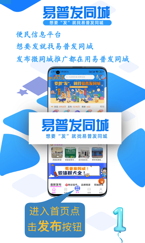 想找信息就找易普发同城。易普发同城是一个便民信息及信息推广平台,在这里能够快速发布信息并进行查询。本地商家借助这个平台宣传时,可以迅速锁定周边的客户。它让需求方和供应方之间的沟通变得十分便捷,无论何时何地,你都能发现周边的各种信息。