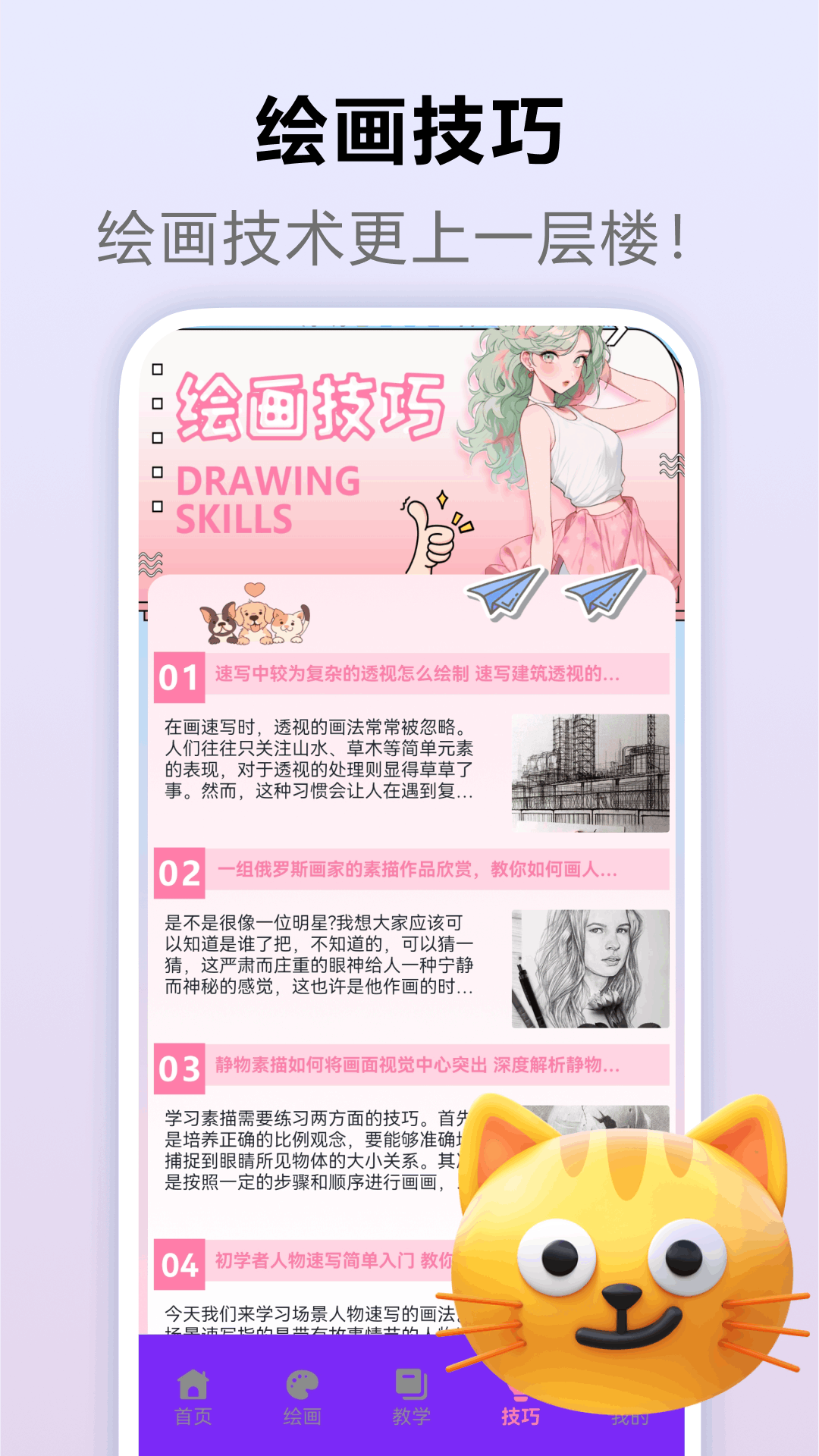 【趣味绘画内容】它涵盖了绘画板,还包含绘画技巧以及绘画教学等内容。