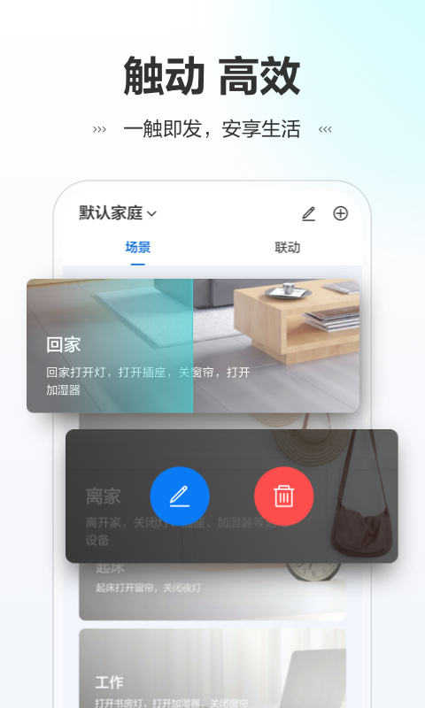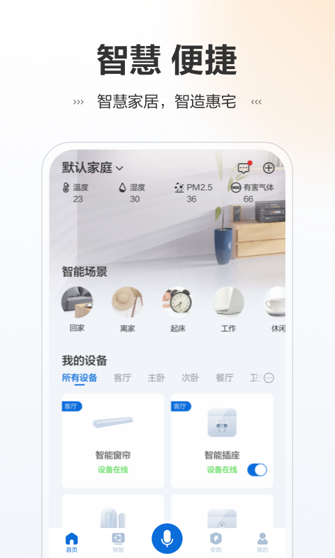讯小智软件是面向智慧家庭及各类智能家居设备使用的终端用户,设计的一款智能家居控制工具,其具备用户注册登录,设备绑定解绑,设备控制,安防报警,以及场景及联动设置功能。同时,为便于用户控制,还提供了语音控制智能家居及场景的功能。