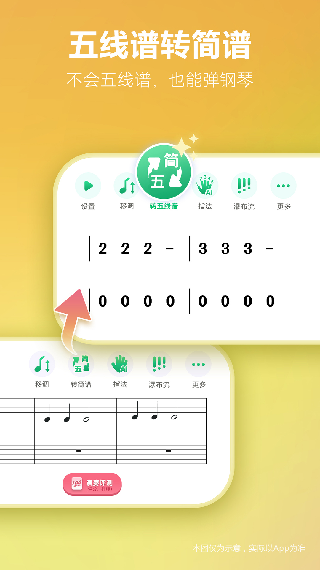 【多种功能一键操作,满足各种需求】钢琴谱可进行AI智能指法标注,实现五线谱与简谱相互转换,能对15种调号任意移调,还能进行黑键标注,就像给您的练琴过程添上了翅膀,让您看谱、练琴更加丰富和便捷。