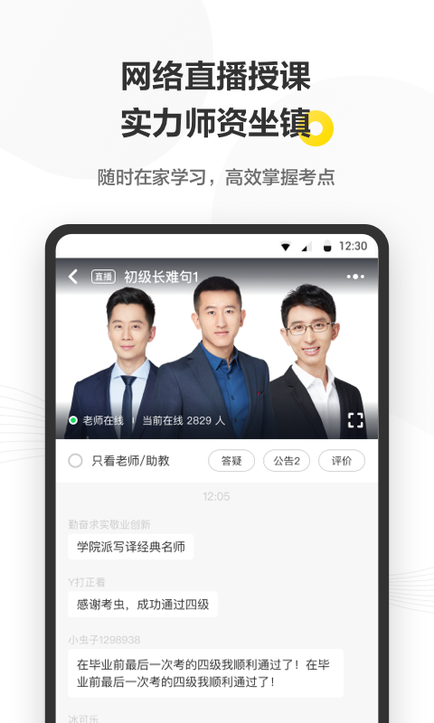 在线直播:考生可以跟随考虫的老师进行直播学习,并且能够实时互动,沉浸于学习氛围之中。
