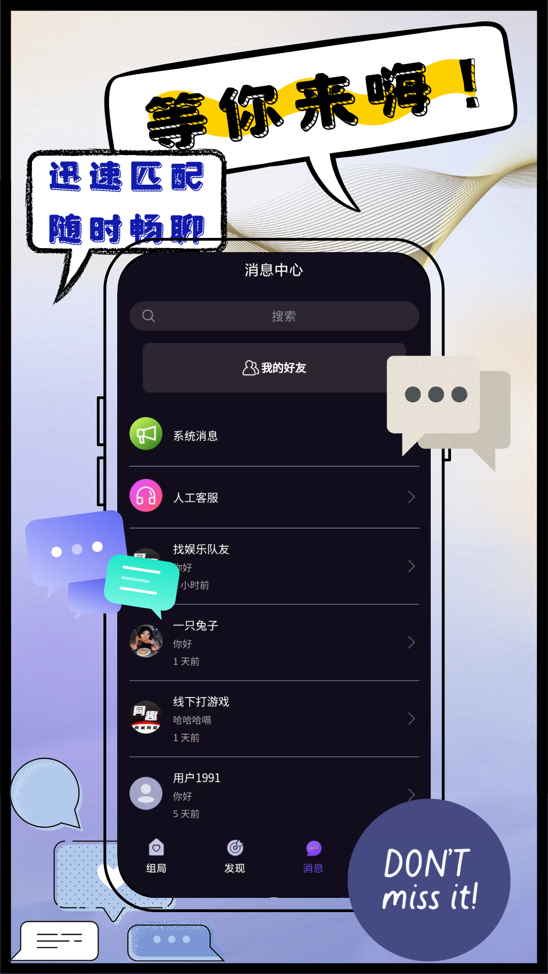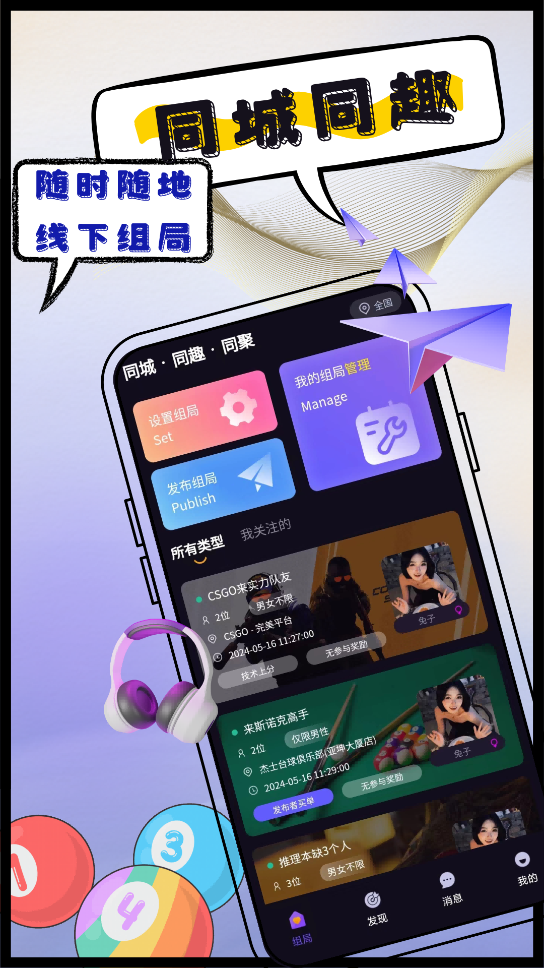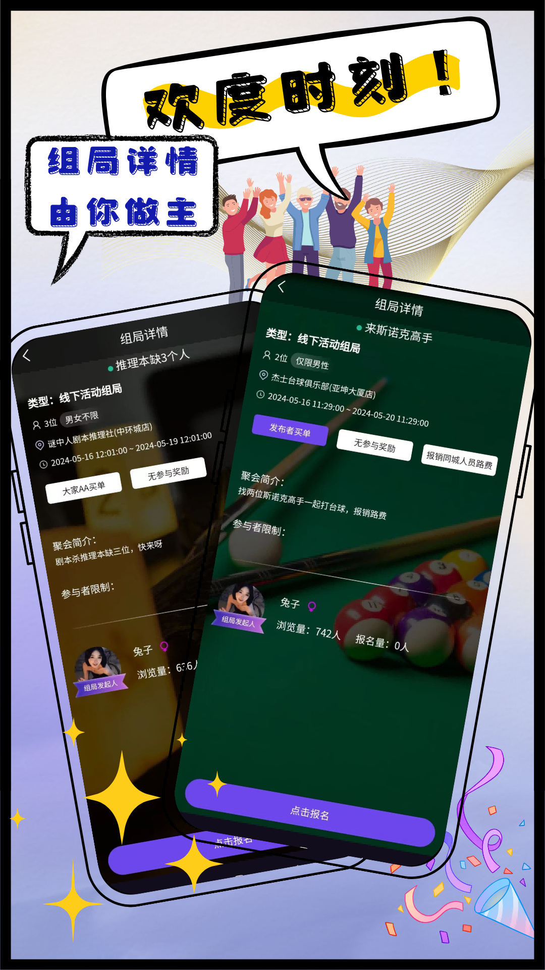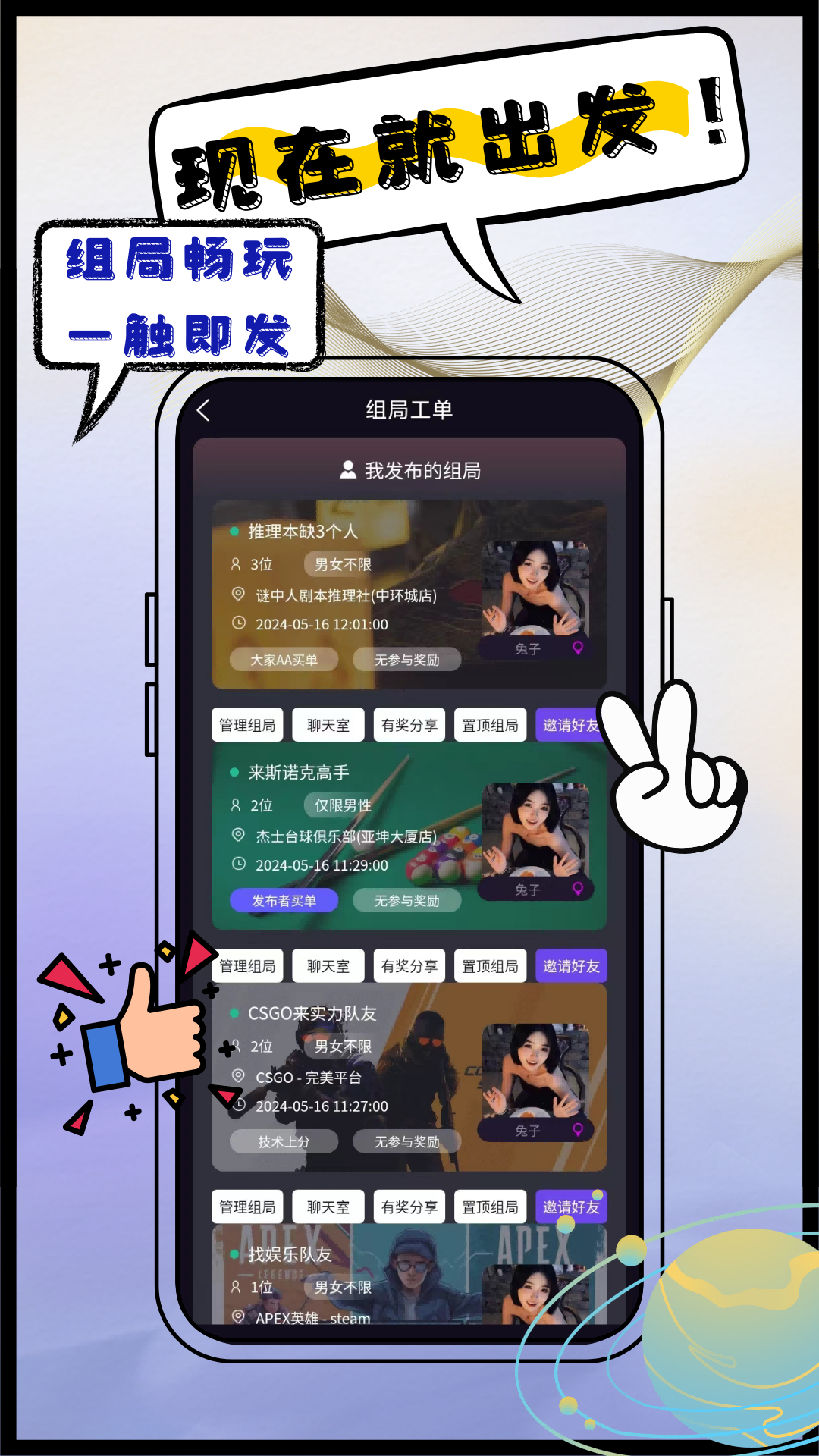 **同趣组局**:用户能够邀请趣味相投的搭档,一同参与线上或线下的游戏聚会之类的社交活动,从而快速与新朋友熟悉起来。