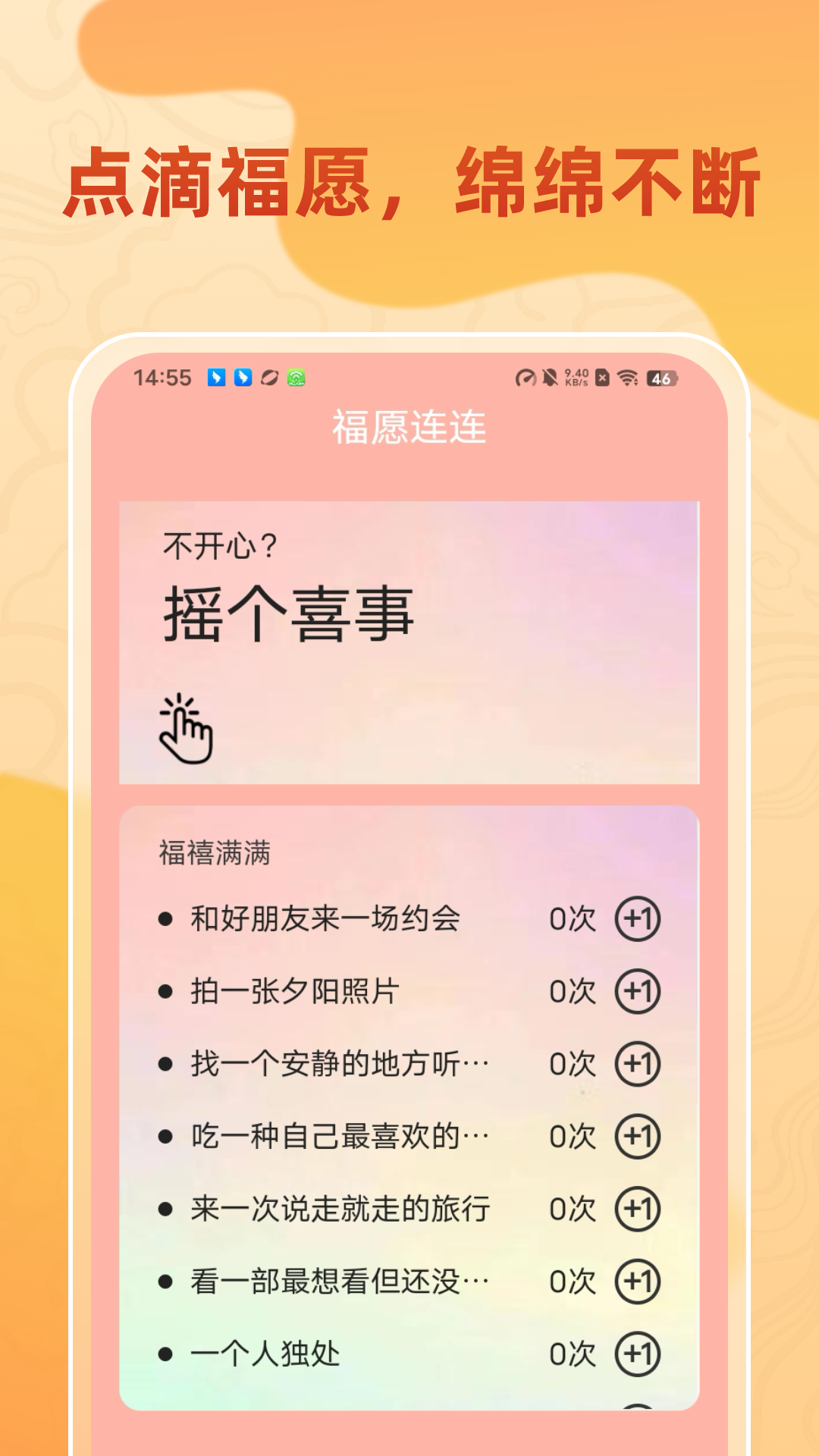 在人生的漫长旅途中,每个人心中都满怀着梦想与希望。福愿连连,这是一款全方位的生活助手,它能够助力您把梦想转化为现实。不管您的愿望是宏伟远大,还是渺小细微,福愿连连都会成为您实现这些愿望的忠实伙伴。