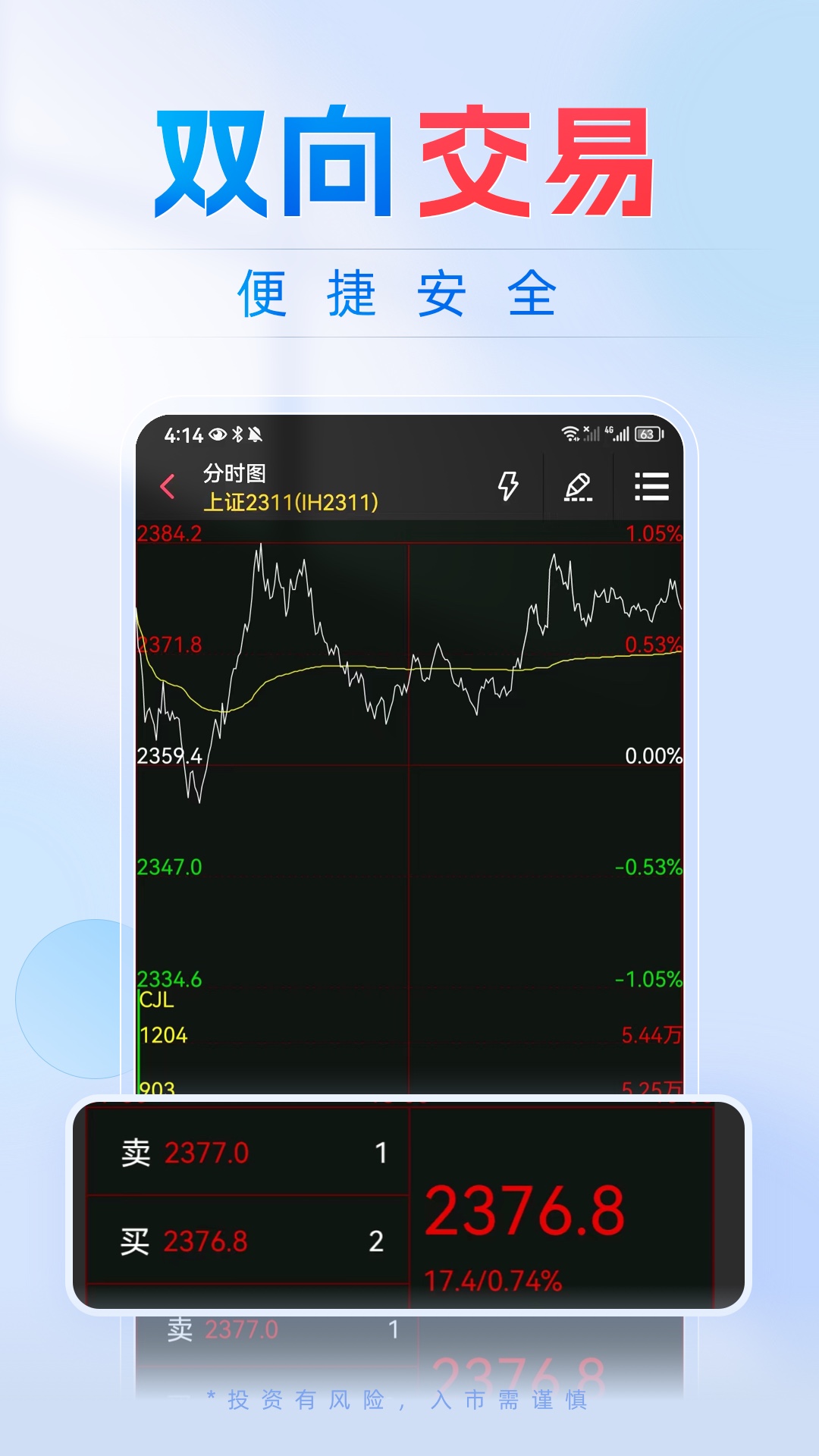 ④期货交易:闪电下单,交易灵活,全天候交易时间,资金安全保障。