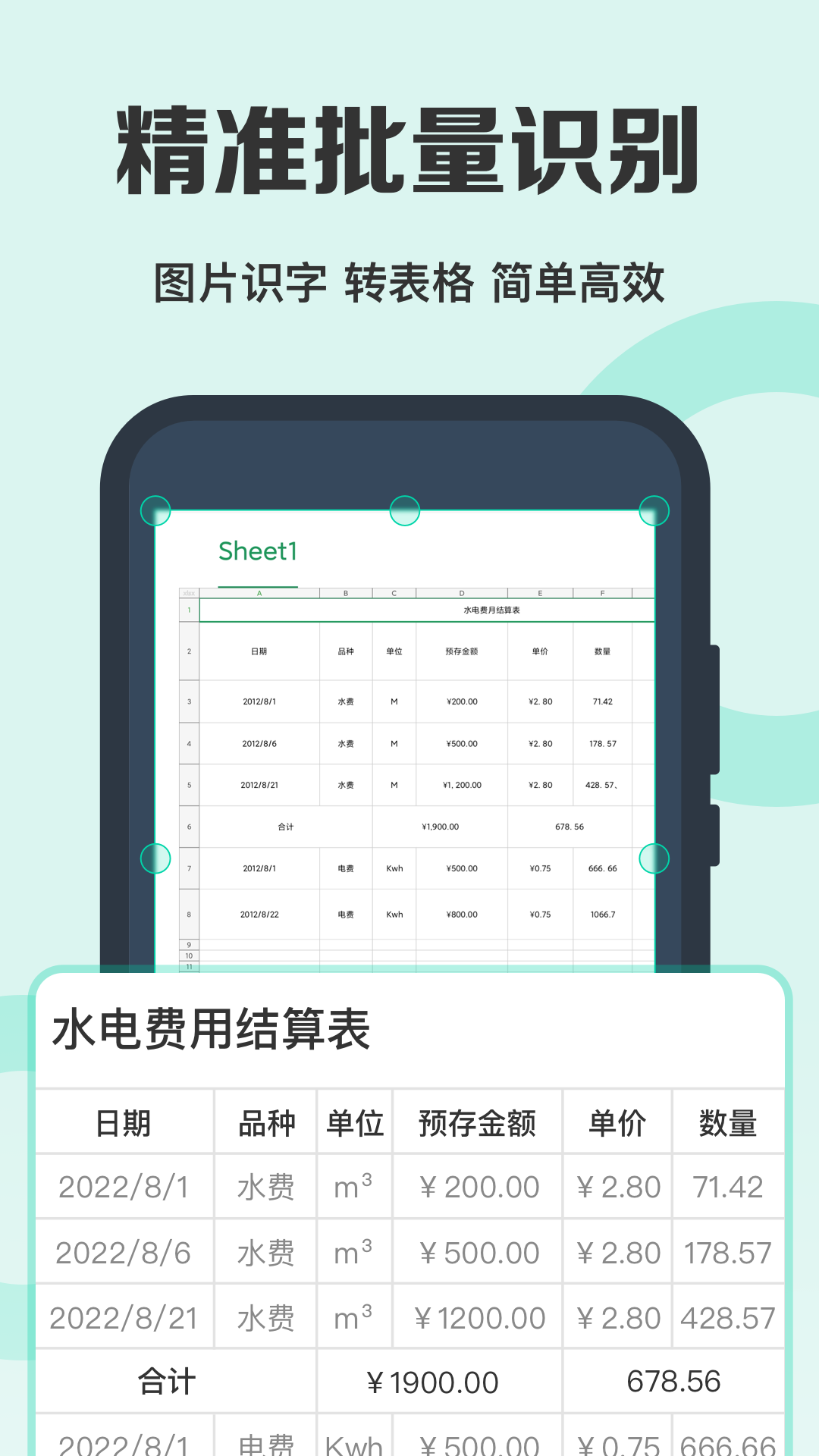 能够智能识别表格文档,并且将识别结果保存为Excel格式,快速实现纸质报表单据的自动录入。