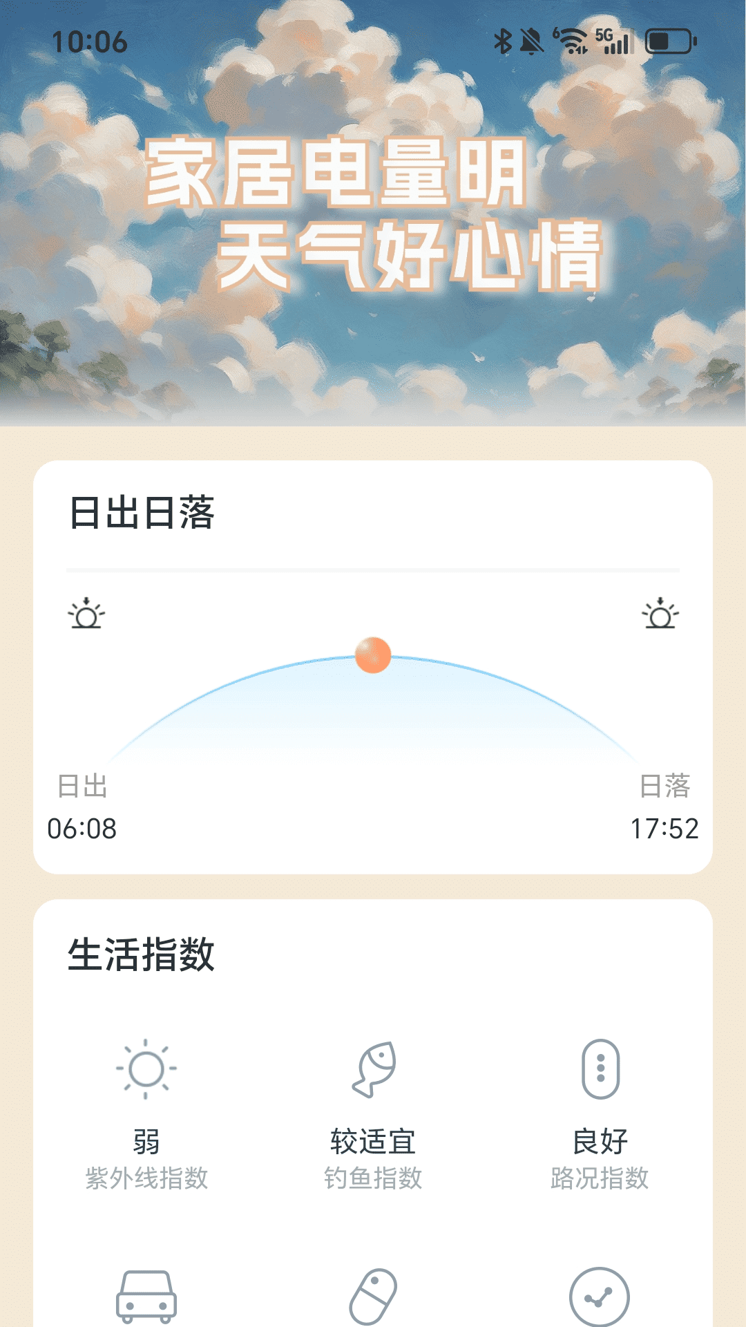 3. 生活小帮手:充电新气象不仅关注您的手机电量,更关心您的生活环境。每日天气、环境相关数据,助您出行无忧,健康生活。同时,支持家居电量检测,自主进行家居电量编辑,节能省电,绿色生活。