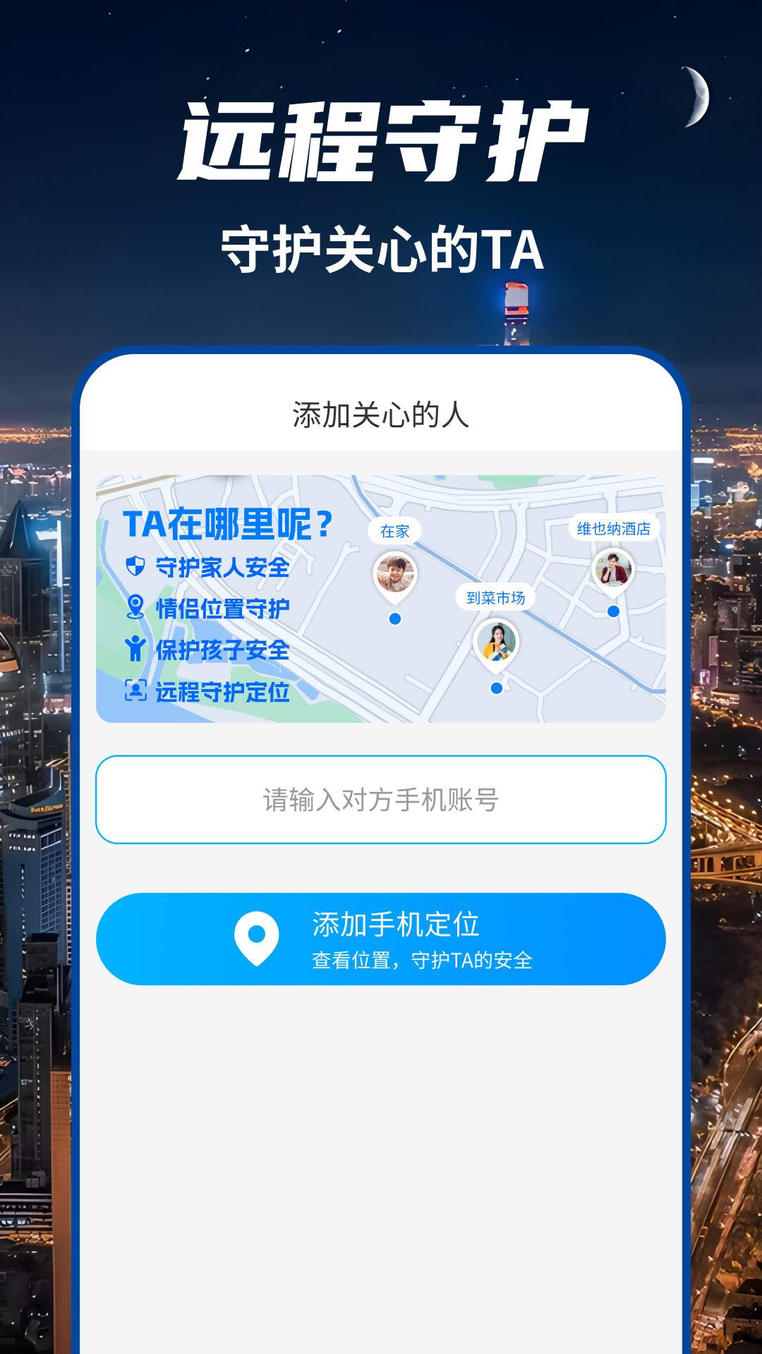 1、位置查看:添加查看亲友当前手机定位信息