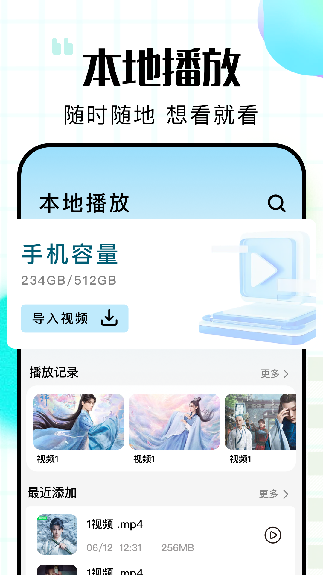3. 本地播放:无论何时何地,只要您想观看就能随时看。