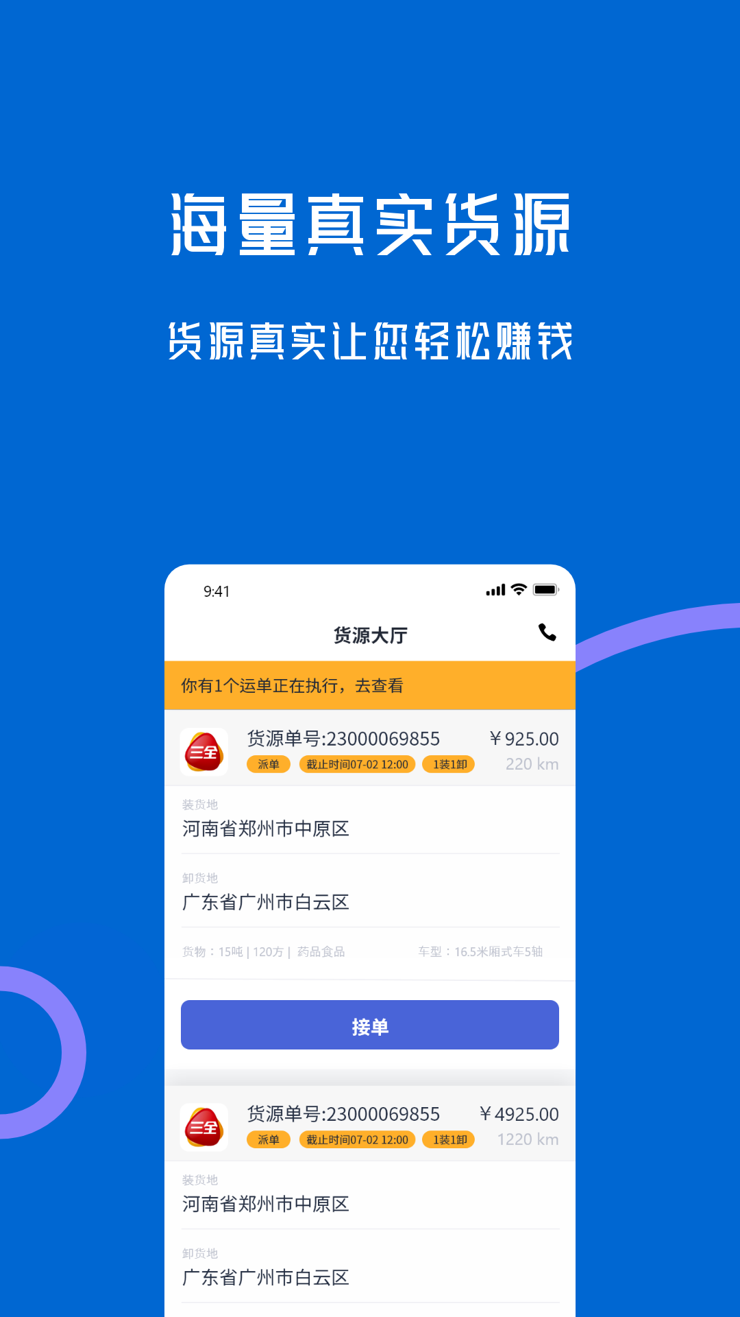2,已搭建完善的网络货运平台,从货源发布到司机接单、运输、交易等环节全部实时把控。