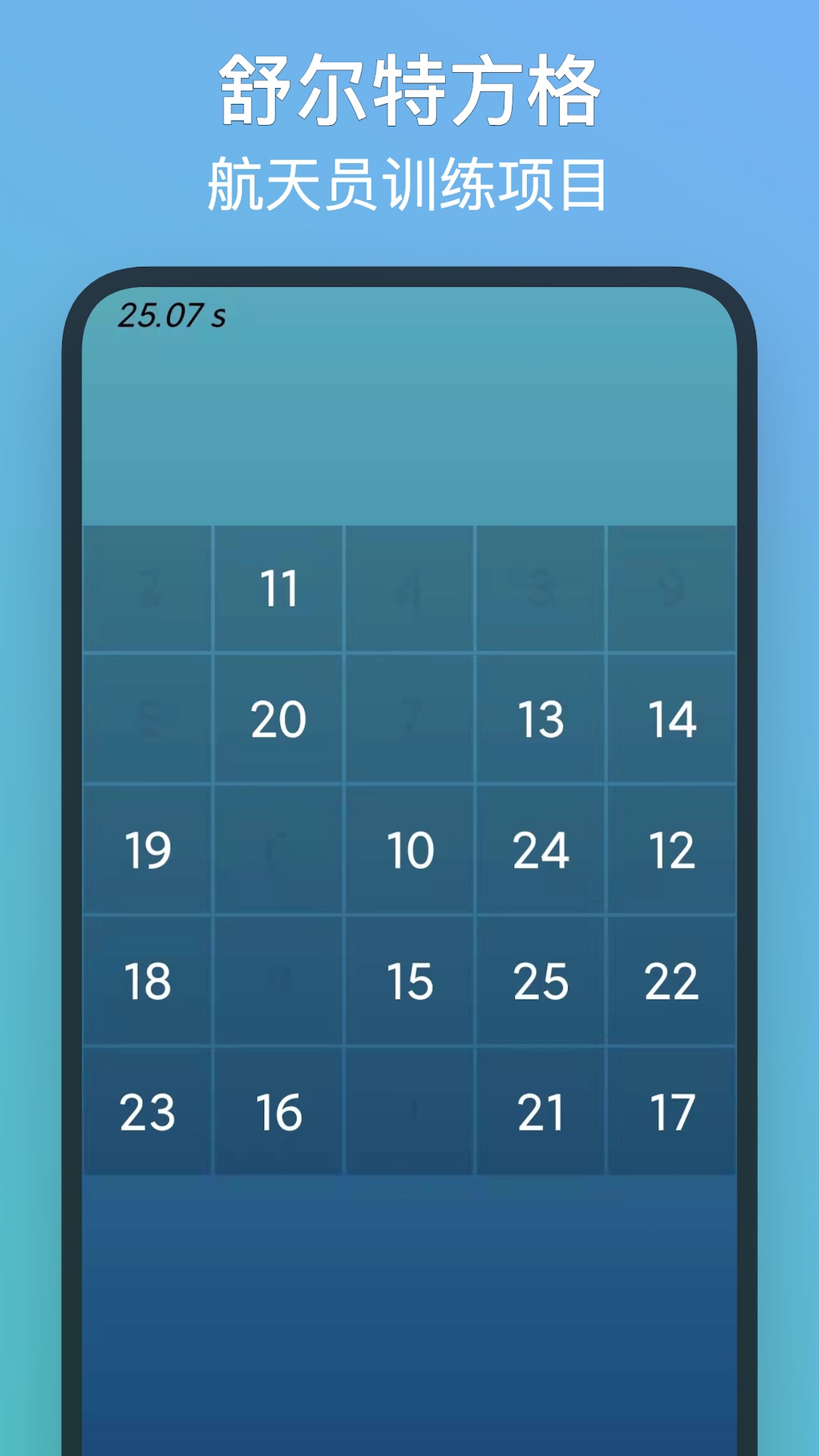 【标准训练】采用标准的5x5舒尔特方格训练法。