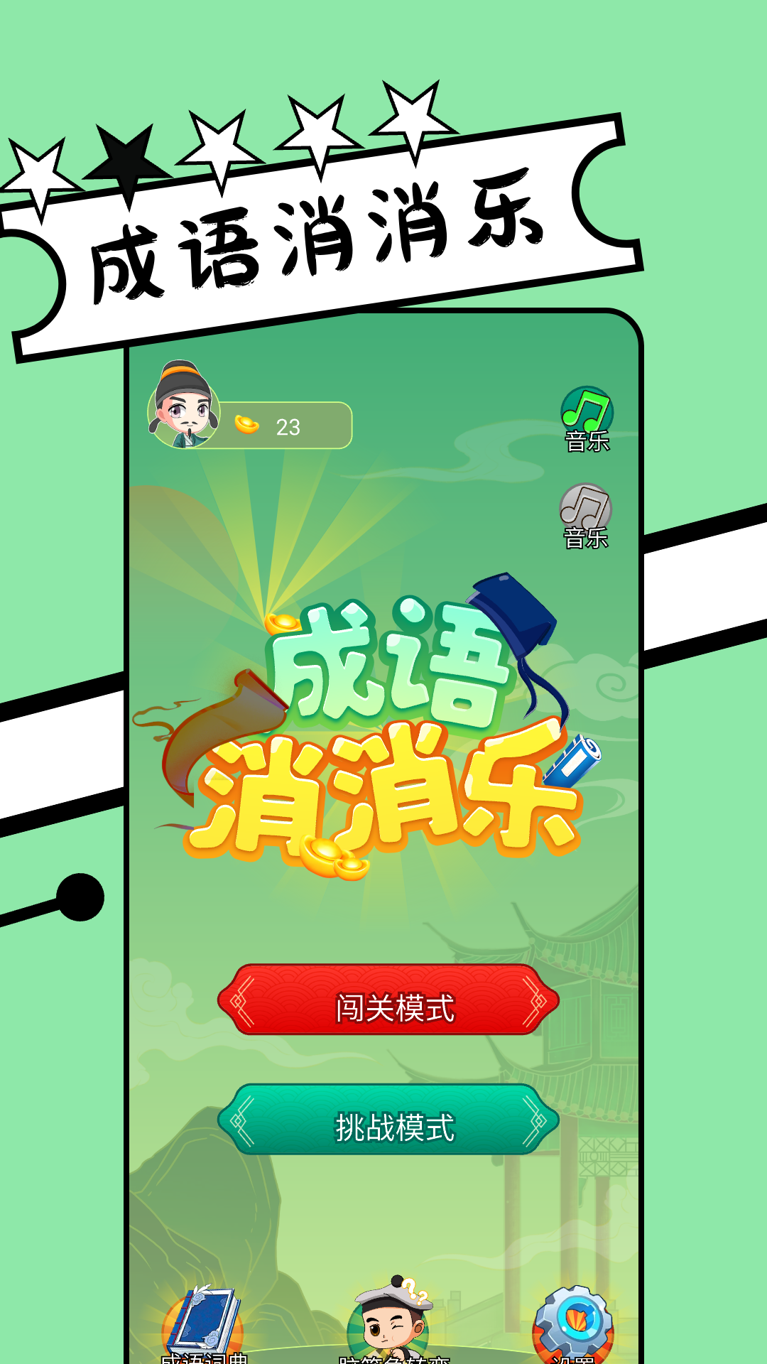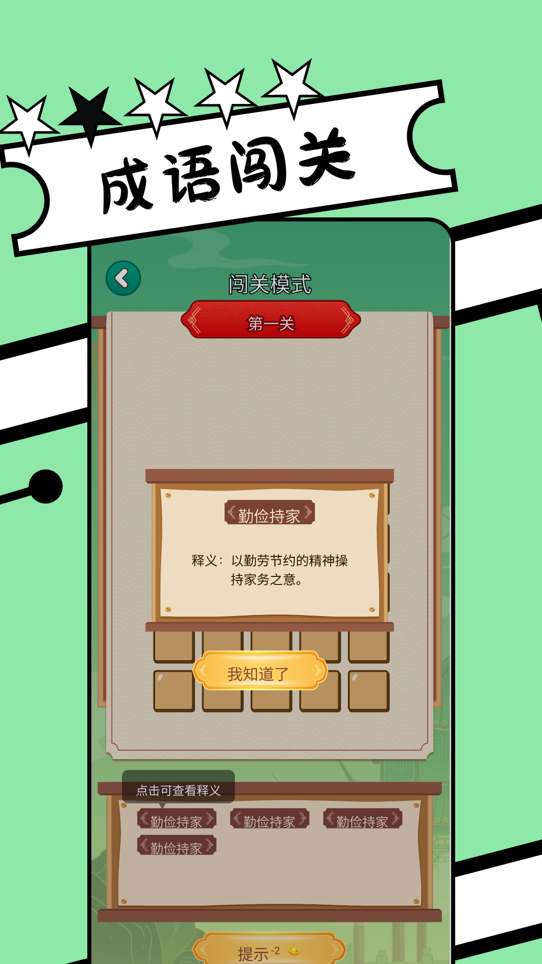 通过精选不同成语闯关模式逐个破解,在趣玩中锻炼观察力与积累成语知识,趣味盎然,老少皆宜。