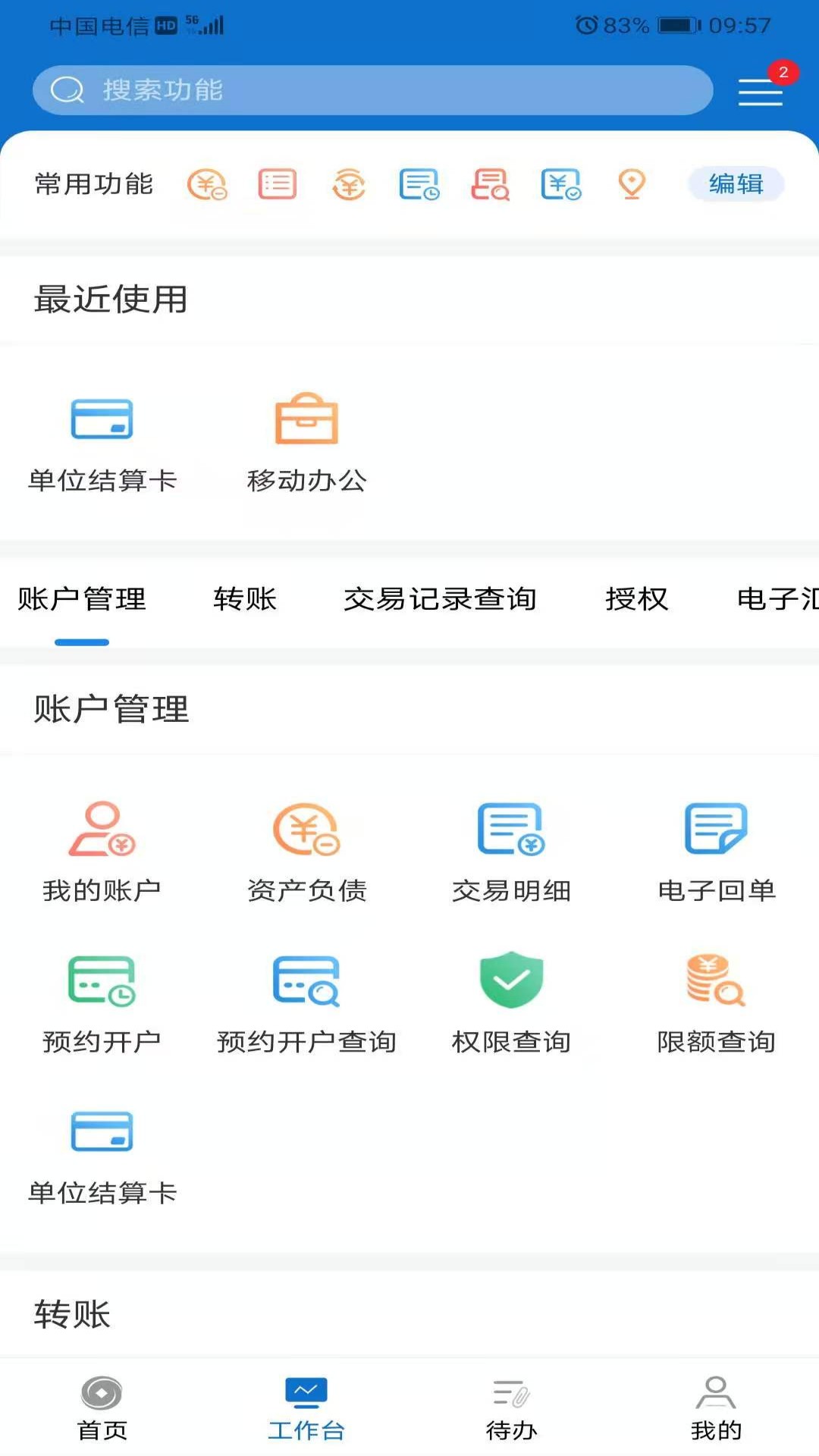 该企业手机银行向企业客户提供诸多功能,涵盖账户管理、转账汇款、业务授权、预约开户、银企对账、交易查询、投资以及缴费等。这些功能可以有力地推动企业客户实现远程办公,并且做出精准的决策。