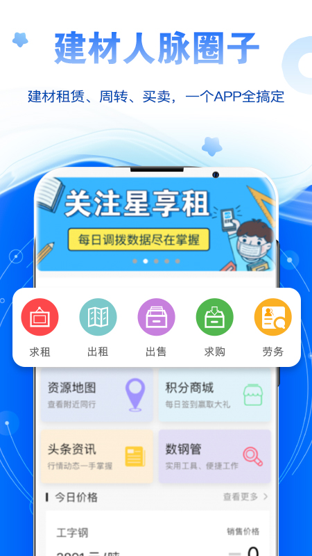 在星享租这个APP里,建材租赁、周转、买卖相关的事务都能轻松搞定,海量的供求信息可免费发布。