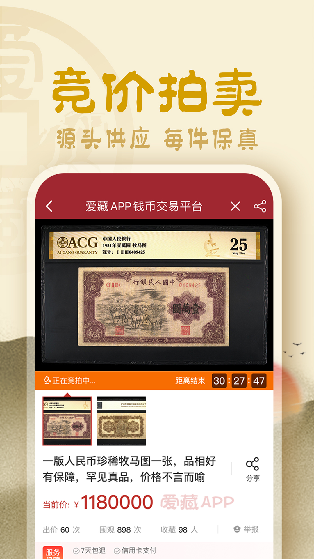爱藏创立于2005年,中国收藏行业十八年大品牌。旗下爱藏APP是中国知名的钱币收藏交易平台,累计交易额30亿。旗下爱藏评级是中国知名的钱币鉴定评级机构,累计评级量3000万枚中国和世界钱币总价值几十亿。