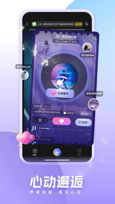 在这个APP里,借助各类兴趣标签,你可以迅速结识新朋友。还能够聆听美妙的声音,进而邂逅有趣之人。