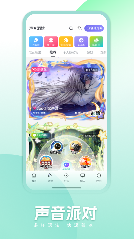这里有在线声优派对,你能与他人即时互动,不管何时何地,都可以找到心仪的声音,收获懂你的陪伴和知心的守护。专属的可爱虚拟形象,可以全方位展现你的独特魅力。此外,像你画我猜、pia戏、线上KTV等众多有趣玩法应有尽有,它无疑是语音聚会交流的绝佳之选。