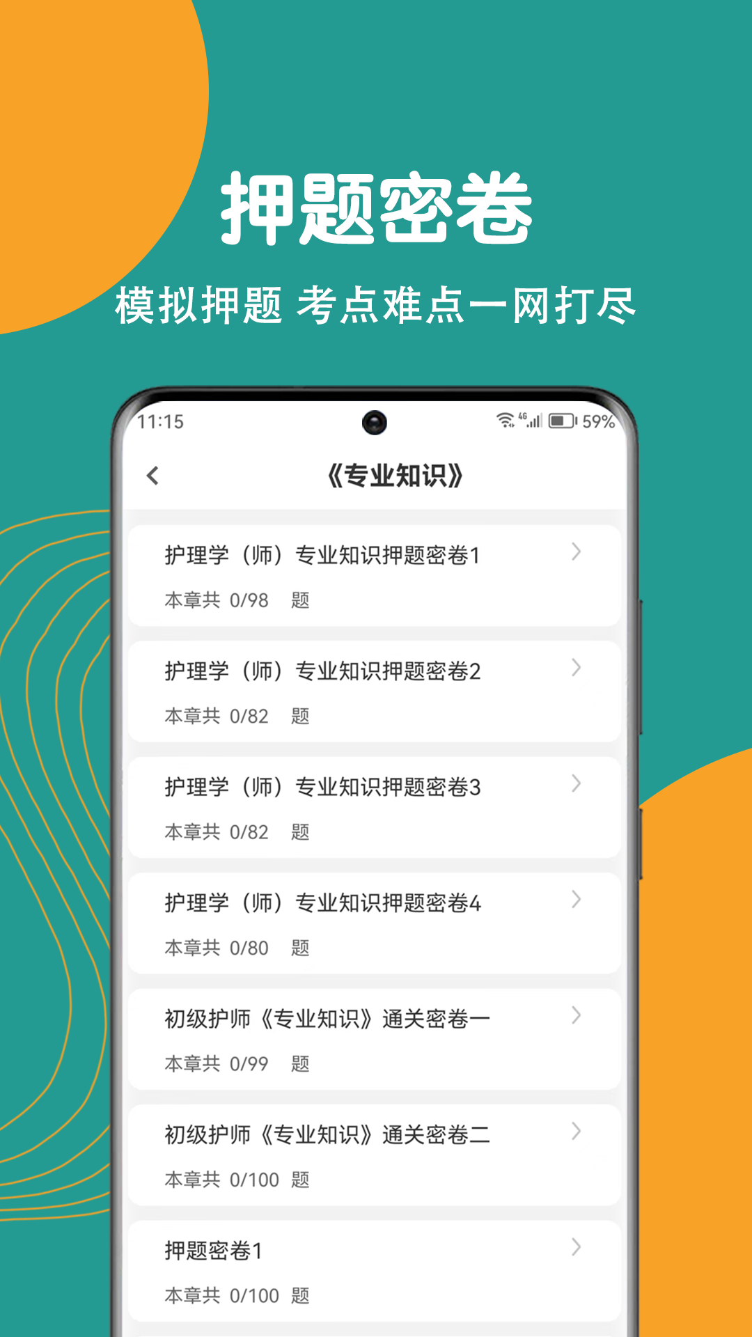 本题库包含护理管理、初级护理、护理学、内科护理、外科护理、妇产科护理、儿科护理专业、中级护师题库等。分章分节,包含常见高频考点,为考试的提供了充分的复习准备,可随时随地学习练习,有效帮助顺利通过初级护师考试,学习知识通过考试通关题库!