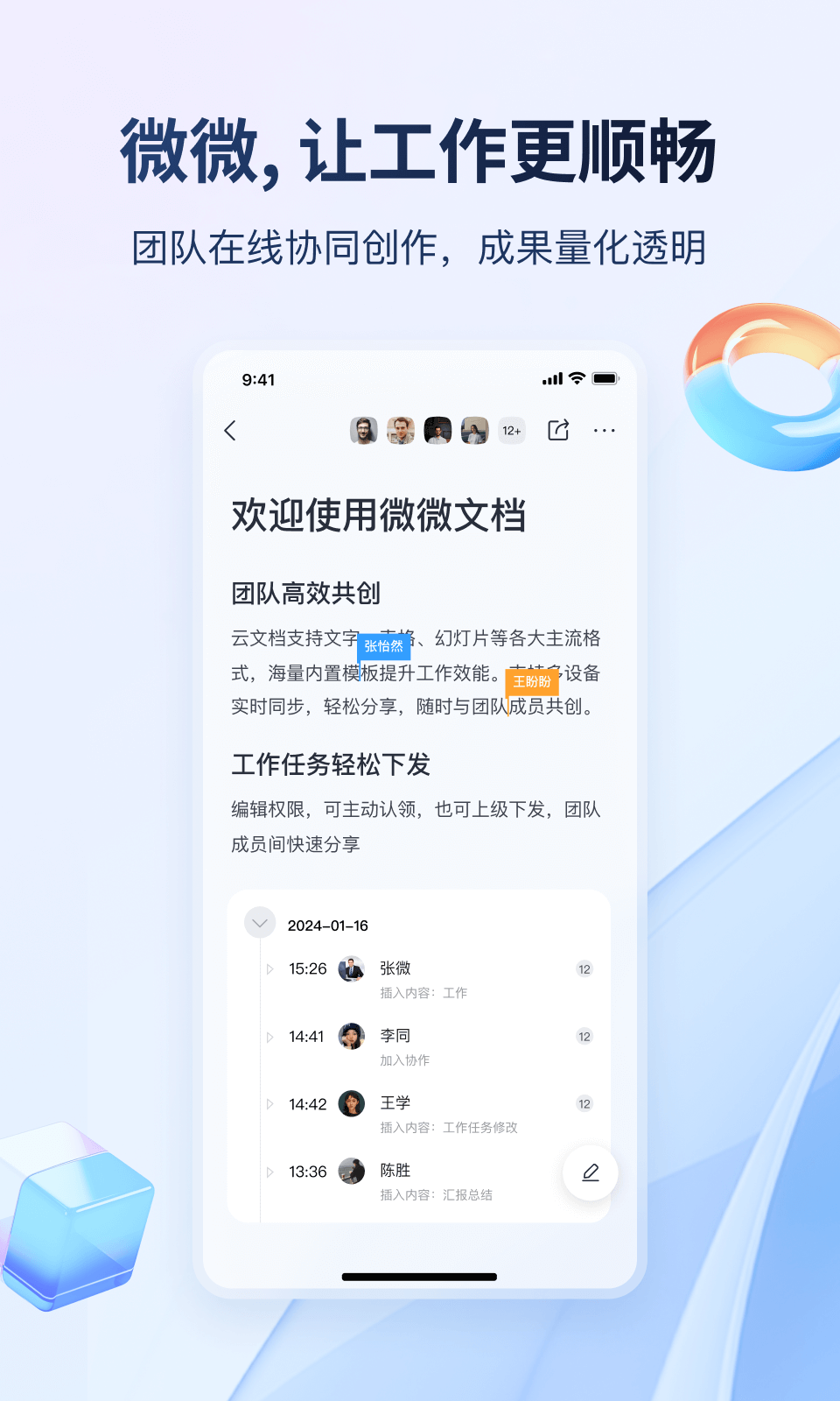 - 微微工作可以便捷地引用各类资料和小功能,这有助于用户在沟通中更快地达成共识,在竞争中领先他人一步。