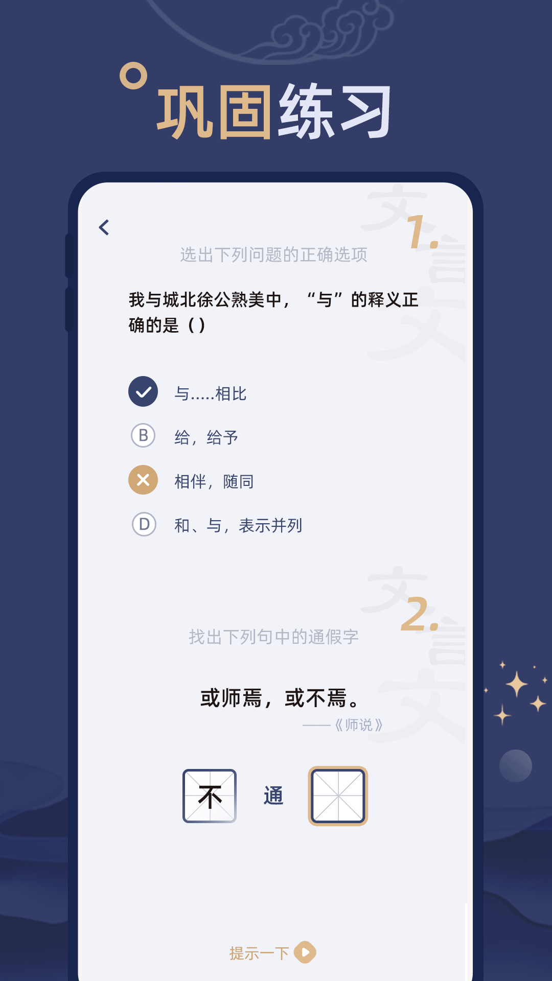 文言文练习是一款针对文言文(小古文)做专题练习的软件,包括阅读、答题、默写等学习文言文的基础功能;软件内容覆盖了小、初、高各阶段的文言文内容,方便用户练习;更有虚词、实词、通假字的专题练习,巩固日常练习的知识。