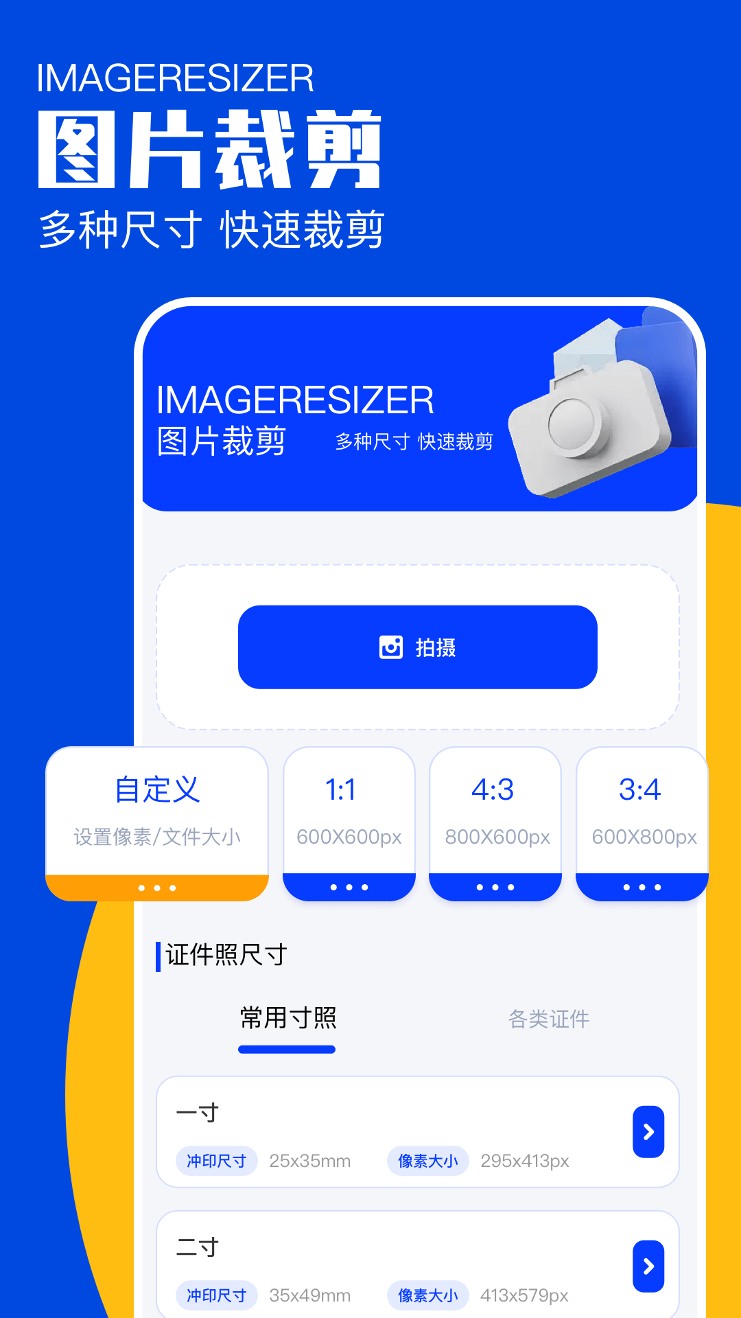 支持各类证件照尺寸裁剪,包括一寸、二寸等多种规格,满足不同的使用需求。