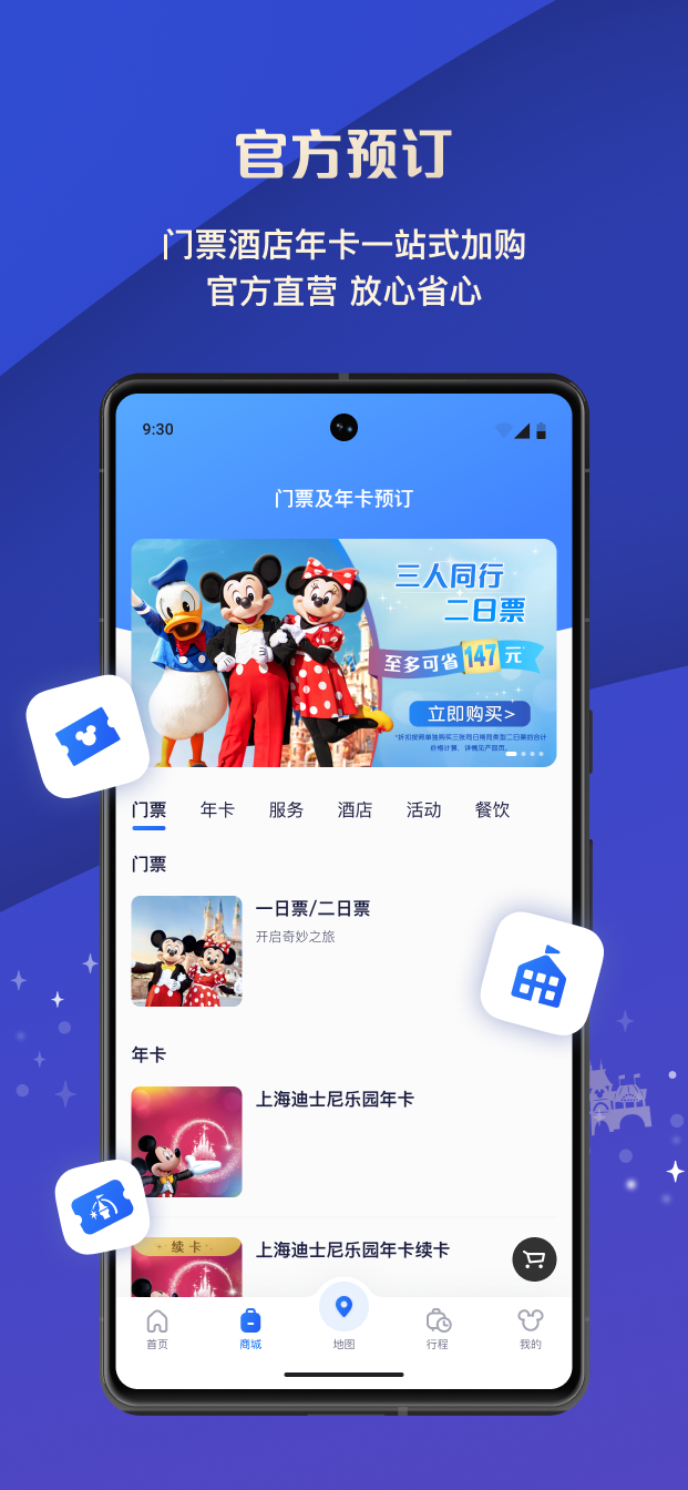 您可以购买上海迪士尼乐园的门票以及年卡;能够查看游乐设施预计的等候时长,还有巡游、娱乐演出的时间表等信息;可以领取“迪士尼预约等候卡”;要是购买“迪士尼尊享卡”的话,还能享受优先通行的服务呢;您也可以浏览乐园地图,精准定位您周边的景点、餐厅或者商店等;并且能及时了解乐园的运营时间、主题活动以及新的官方消息。