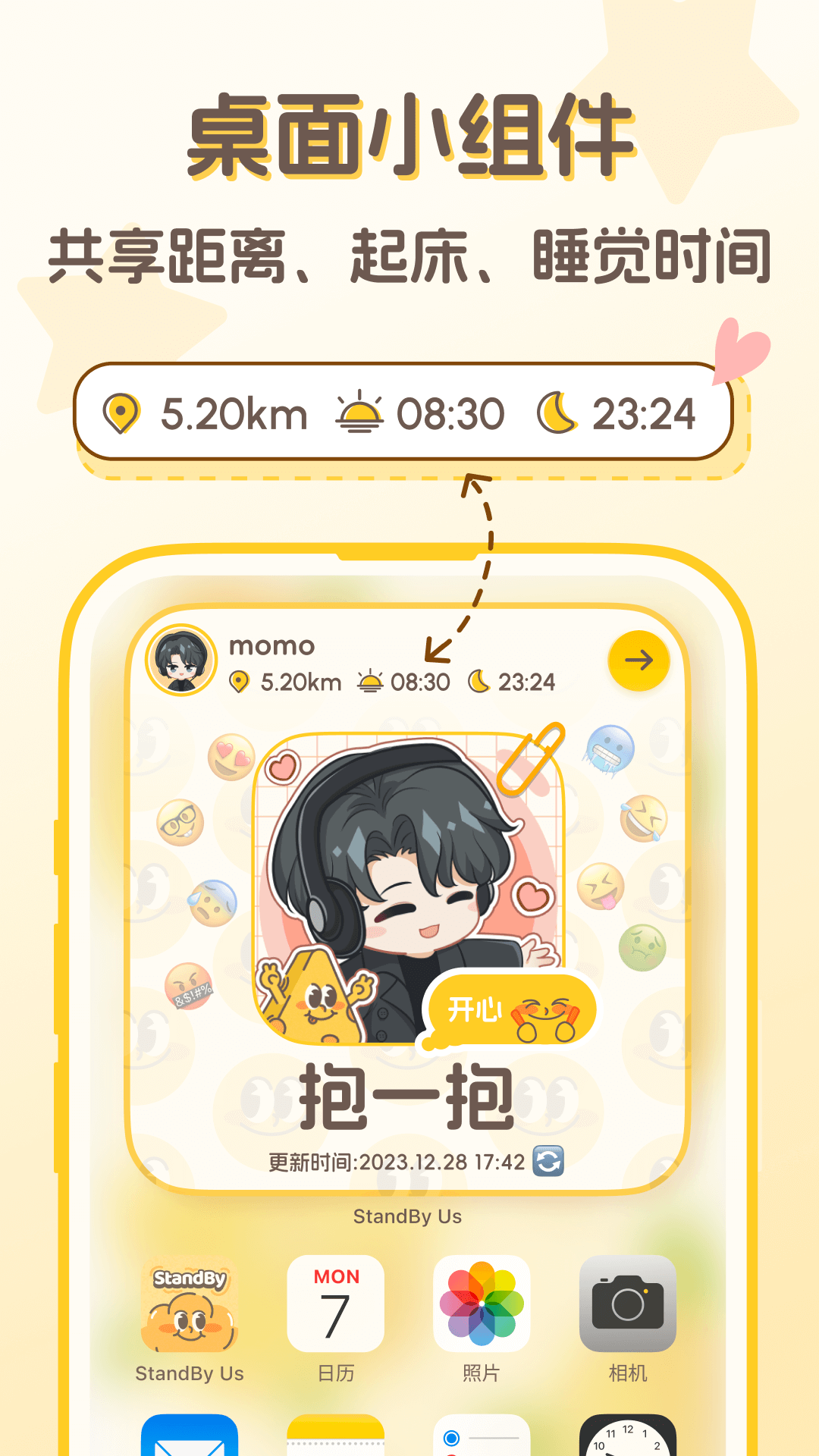 StandBy Us是一款轻社交小组件工具,专为密友和情侣打造,能让他们展示心情状态并进行互动。过去,人们靠车、马、邮件来传递情感,现在借助桌面小组件,你就能把心爱的人“放在”手机桌面上,分享双方的心情、照片、近期状况等。就好像我们置身于同一个宇宙,沿着同样的轨迹运行,“心有灵犀”也被赋予了现代的意义。而且,这里还有腾讯小甜剧《很想很想你》IP联名的Q版皮肤呢。