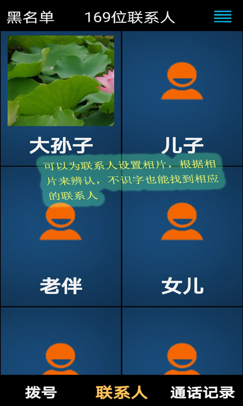 其一,字体大,联系人照片也大,方便老年人查看信息。