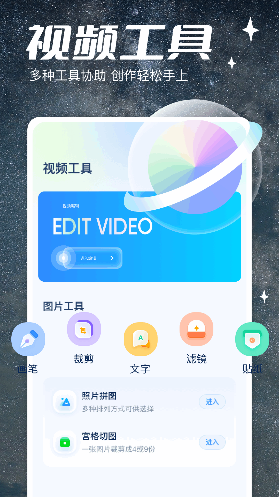 在视频编辑功能上,五彩视频有着诸多实用的功能。它支持画笔绘制,让您可以随心在视频上进行创作;能够进行截图截取,轻松捕捉视频中的精彩瞬间;还可添加文字,为视频增添更多信息或者创意表达。其滤镜种类丰富多样,贴纸也是多种多样,能够满足不同风格视频的创作需求。此外,照片拼图功能和宫格切图功能也被包含其中,为视频编辑提供更多创意可能。